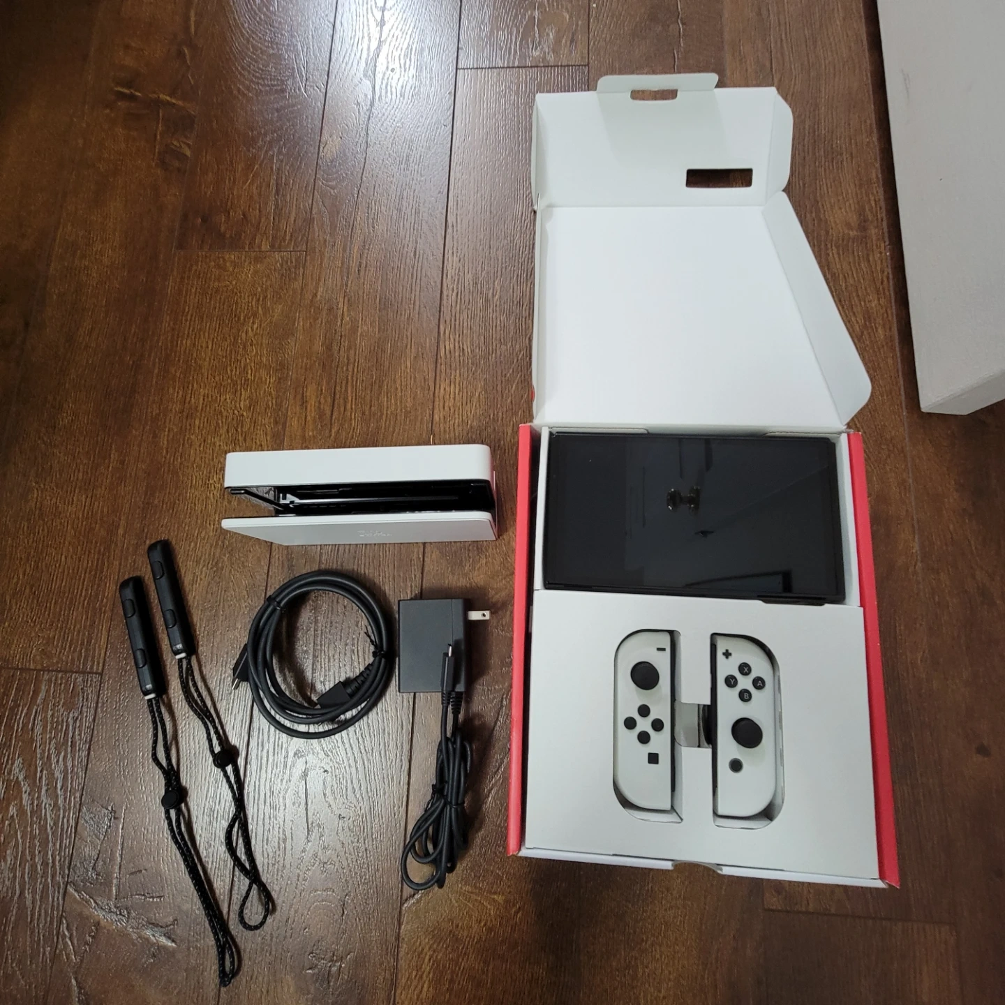 16Selling a Nintendo Switch OLED Model in white! It's in excellent condition and comes with all original components: - Nintendo Switch Console - Joy-Con (L) White - Joy-Con (R) White - Joy-Con Straps - High Speed HDMI Cable - Nintendo Switch Dock White - Nintendo Switch AC Adapter Box is included!