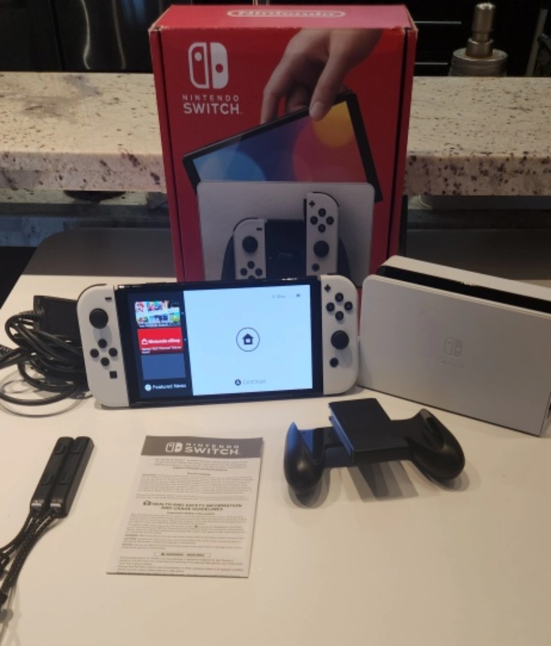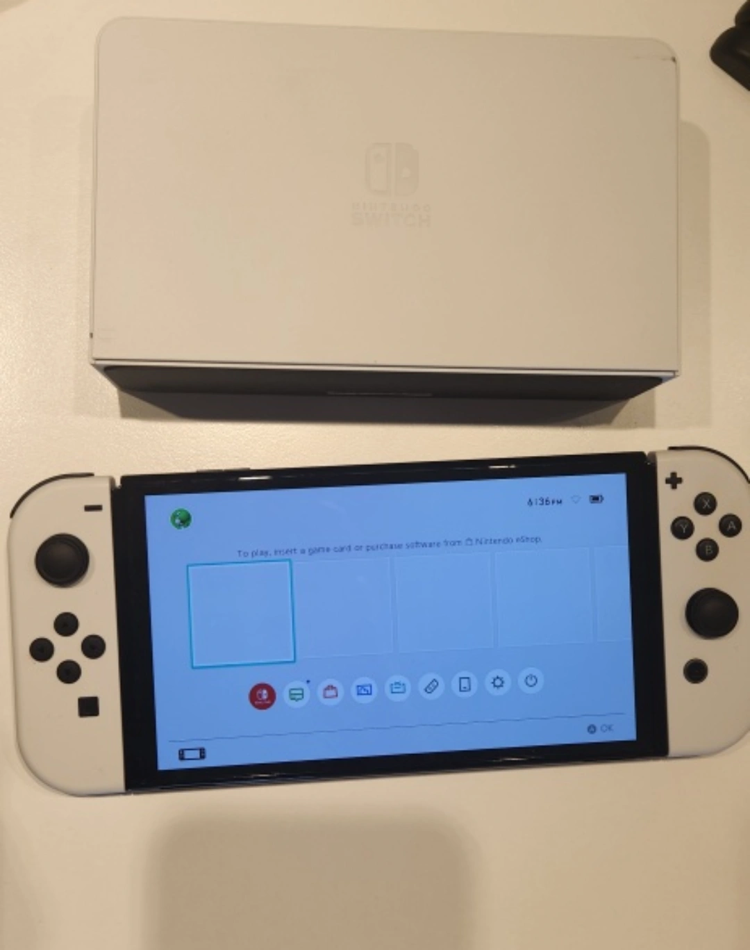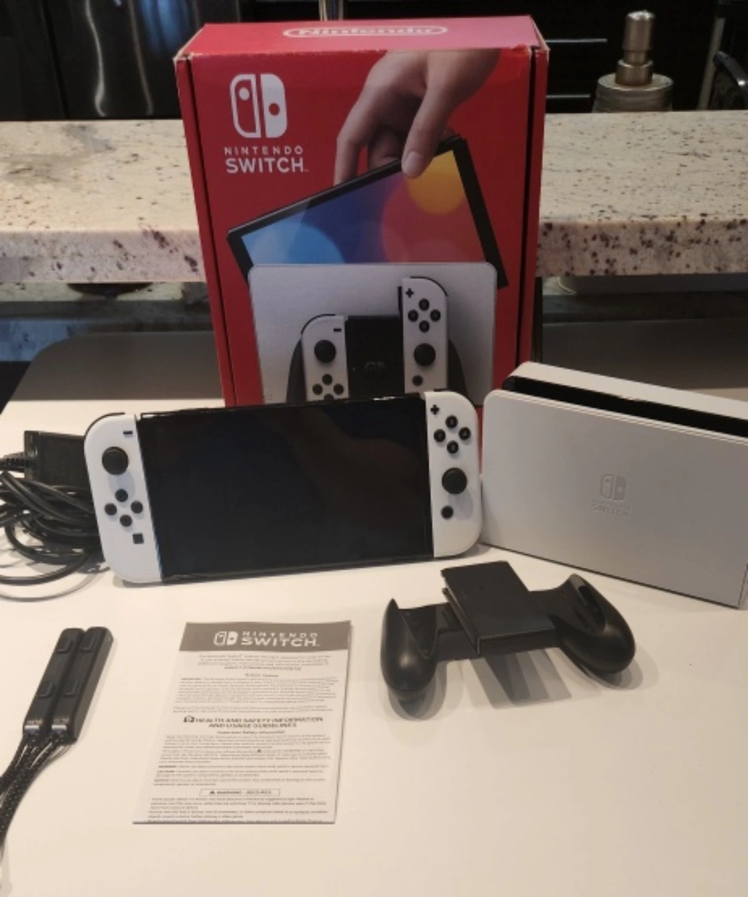 895Selling a white Nintendo Switch OLED model, in excellent condition! It comes with the original box and all included components. Perfect for gaming on the go or at home on the big screen. Box doesn't have all the cardboard inserta.
