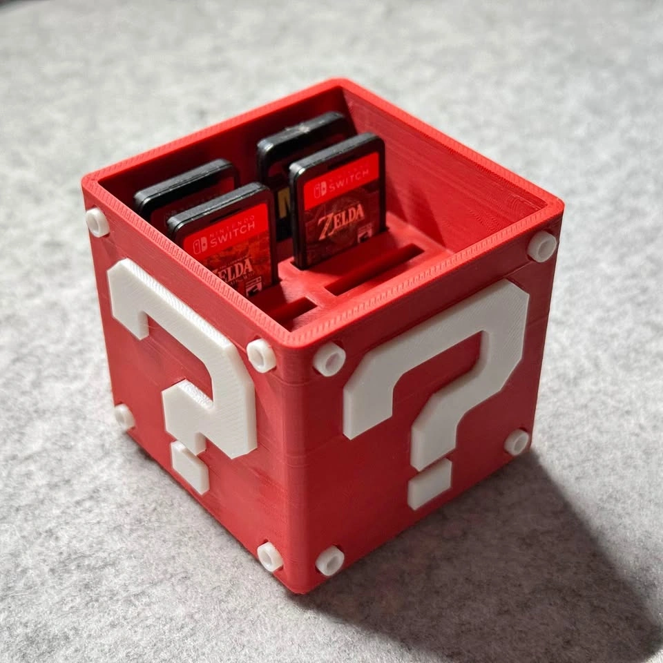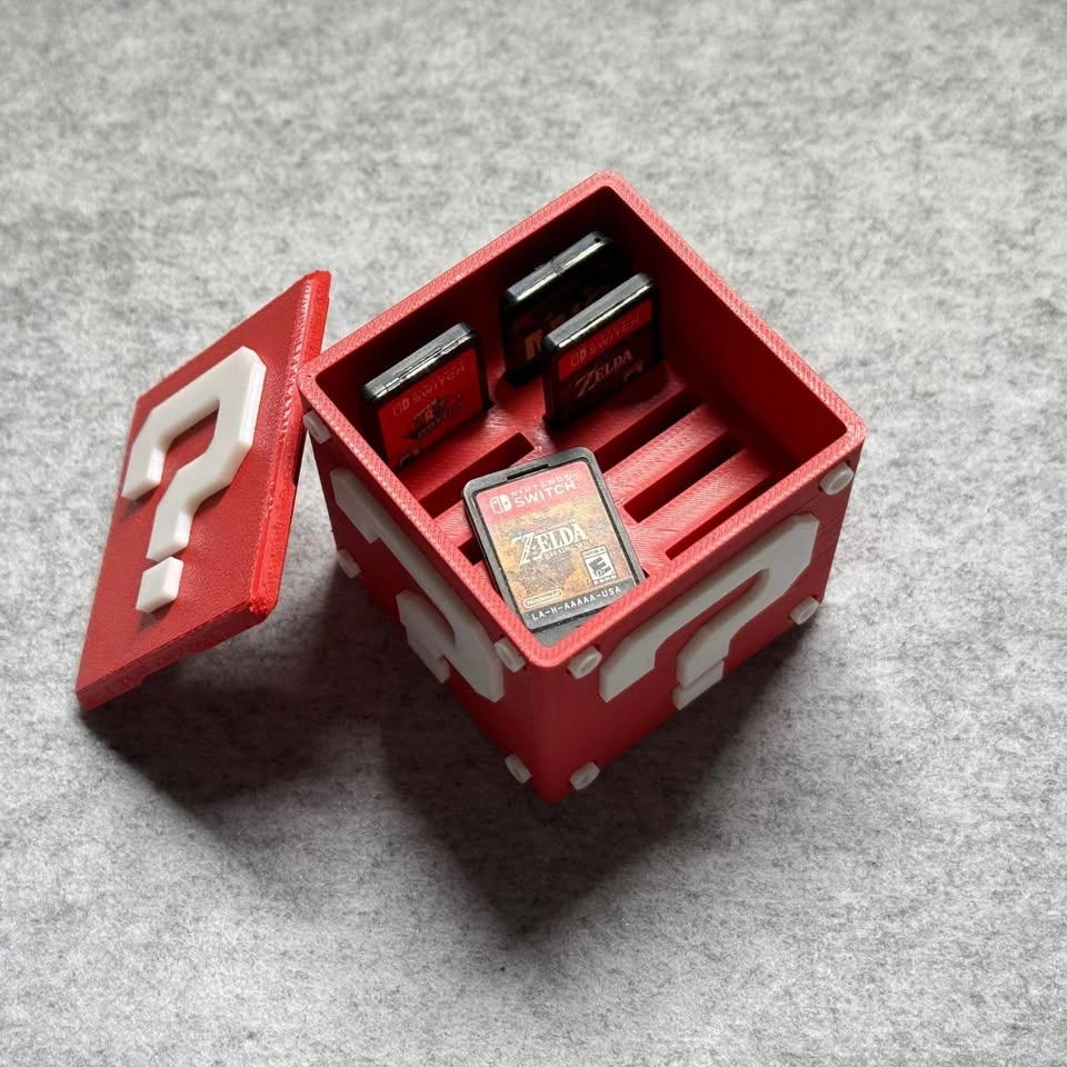 A creative and collectible game card holder inspired by the classic question block design. Perfect for organizing your Nintendo Switch game cards or as a fun and thoughtful gift for any gamer. Features: • Holds up to 10 Nintendo Switch game cartridges securely • Detachable lid for easy access • Compact, durable, and lightweight design • Great for display, storage, or gifting • Handmade with care and attention to detail Color: Red with white accents Condition: Brand new Local Pickup: North York (Mon–Fri 10AM–5PM) Richmond Hill (after 6PM & weekends) FAQ Q: Is this an official Nintendo product? A: No, it’s a fan-made collectible inspired by classic designs. Q: How many cards does it hold? A: It can hold up to 10 Nintendo Switch game cards securely.