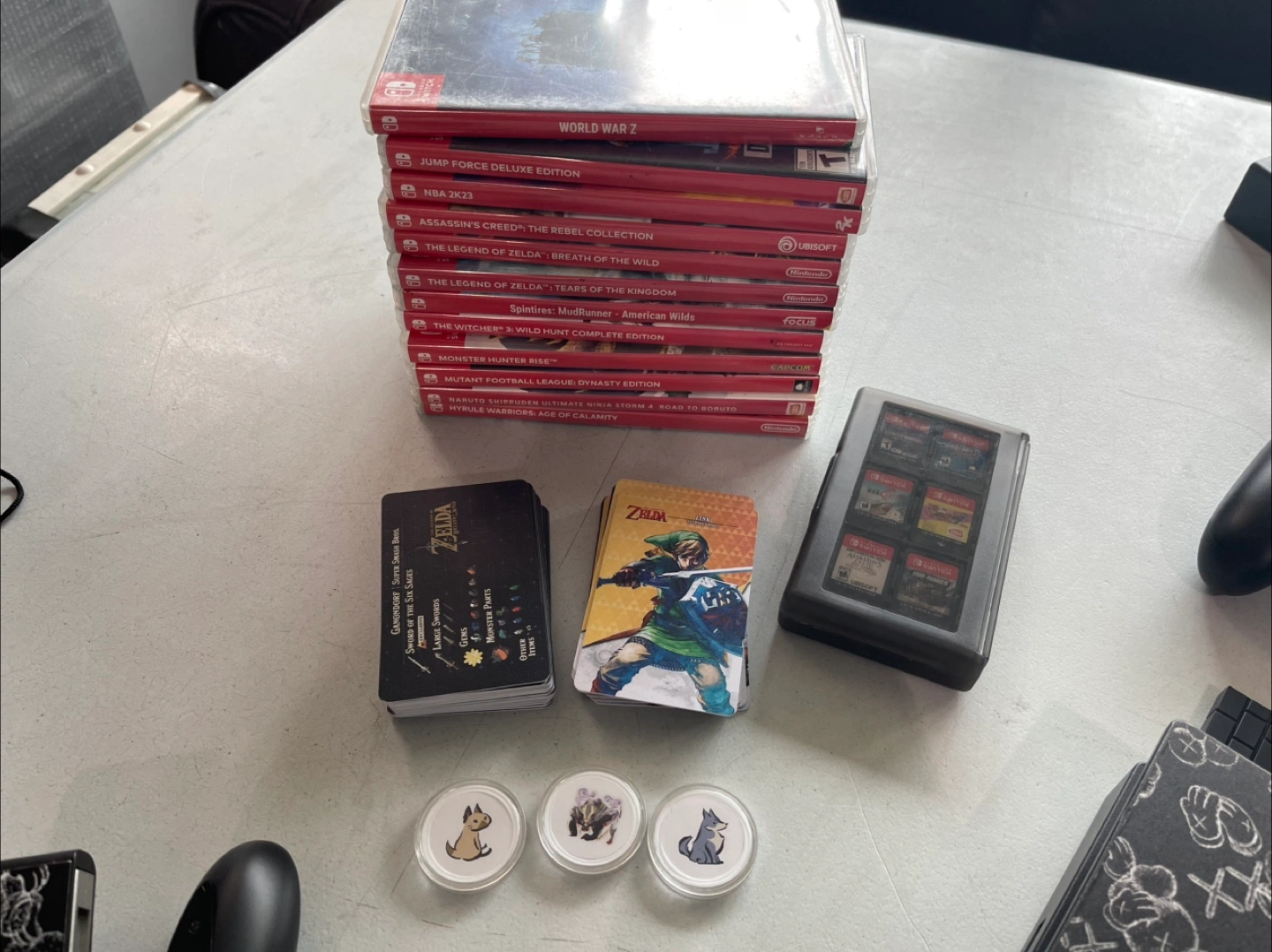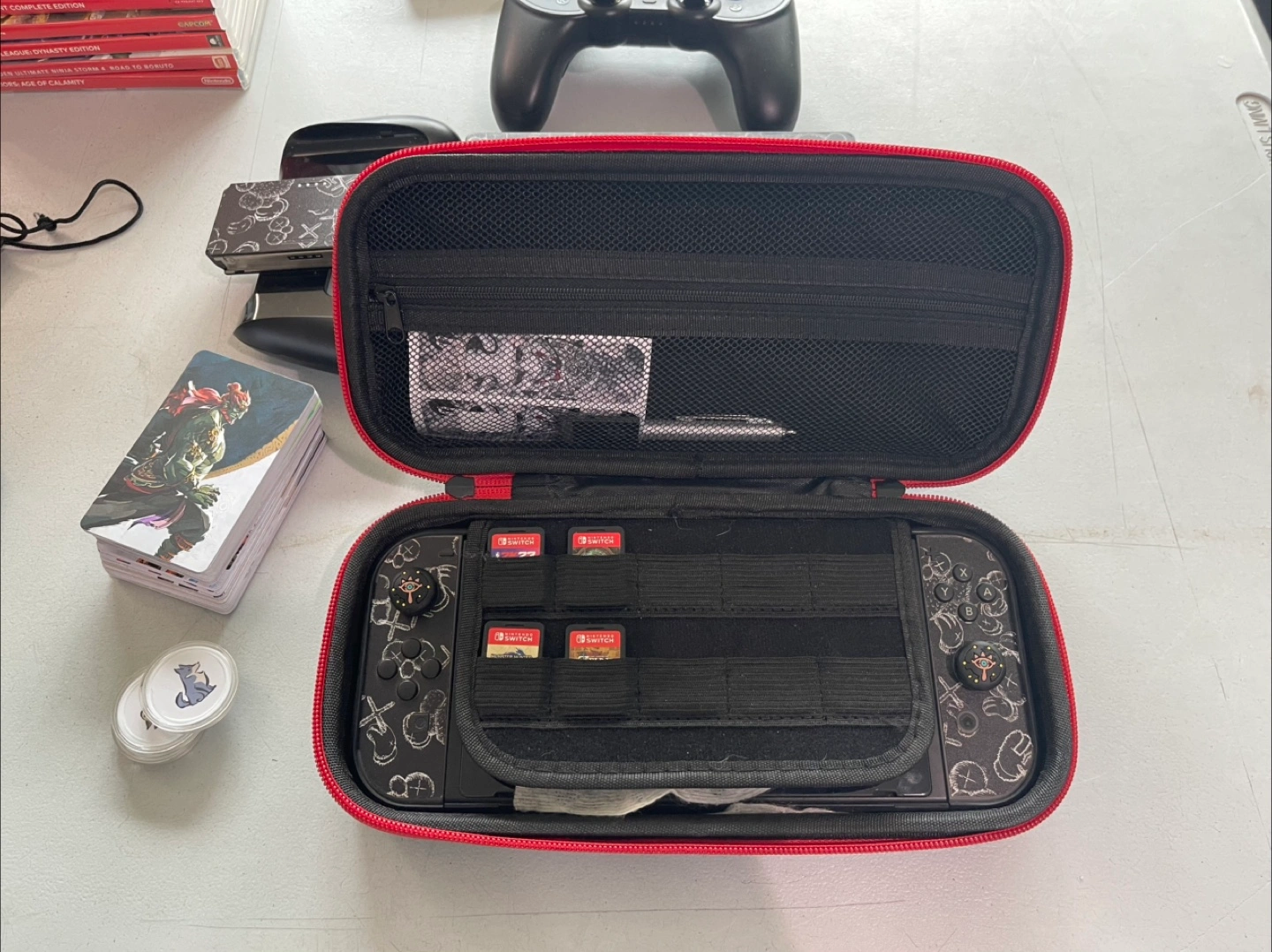 Set includes a Nintendo Switch console and accessories. Comes with a case, games, and other components. Playing with these items might help to release any day-to-day stress. Take all for $400 or pick any inclusions together with the Switch for cheaper transaction. Price negotiable for take all bundle. Excellent condition custom Nintendo switch tempered since bought. Includes: Switch system with SD card Charging dock Controller holder Power cord and HDMI cord Wrist straps Over 10 games with cases perfect for display Amiibo for Zelda TOTK and monster hunter rise 8bitdo pro 2 8bitdo dongle (to connect other controllers) Accessories Pm for more info and pics. RFS: no more time to use it 😓 Pick up at scarborough