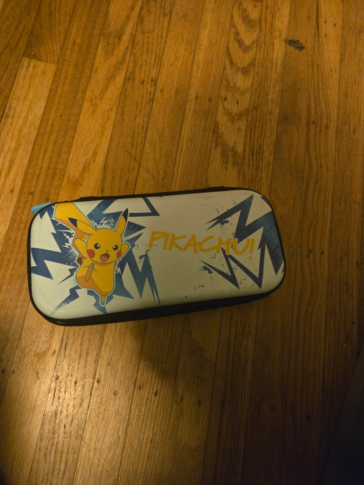 Selling a Nintendo Switch with a case featuring a Pikachu!