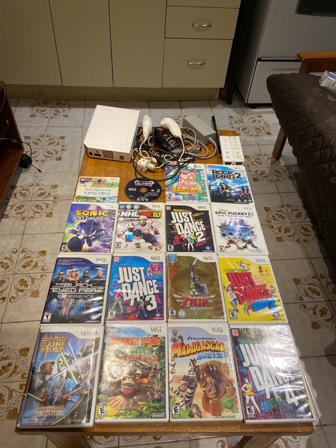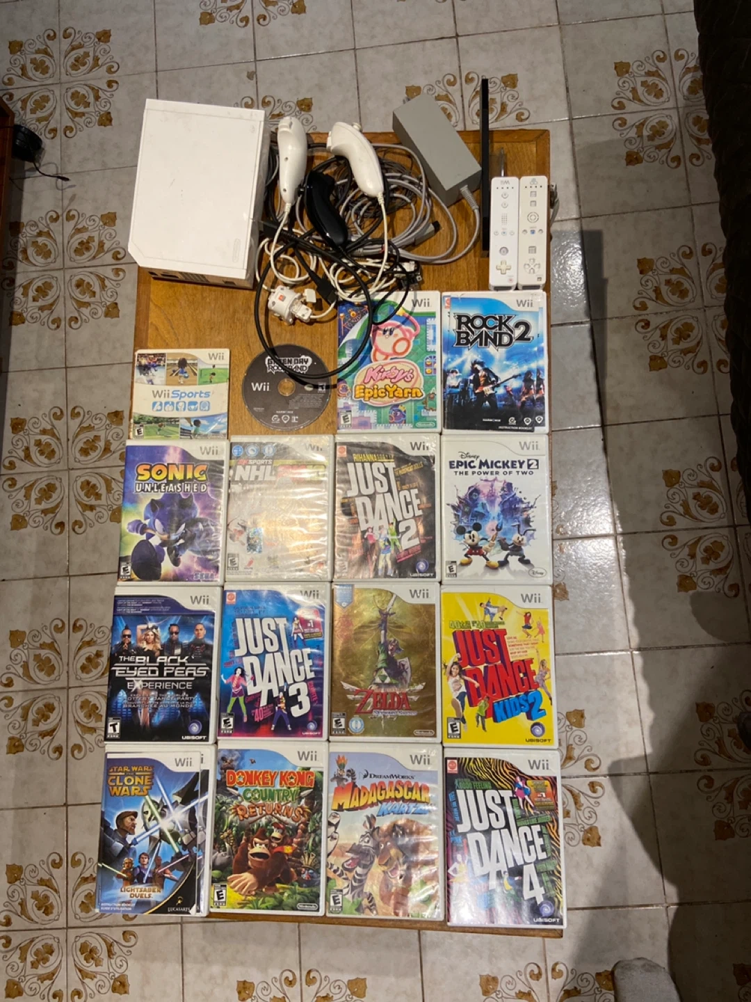 Selling a Nintendo Wii console with a bunch of games and accessories! It comes with the console itself, two Wii remotes, and the power adapter. There are also a variety of games included, such as Wii Sports, Lego Batman, Just Dance, and more! Great for some family fun or reliving some nostalgic moments. 19 games in total. All working.