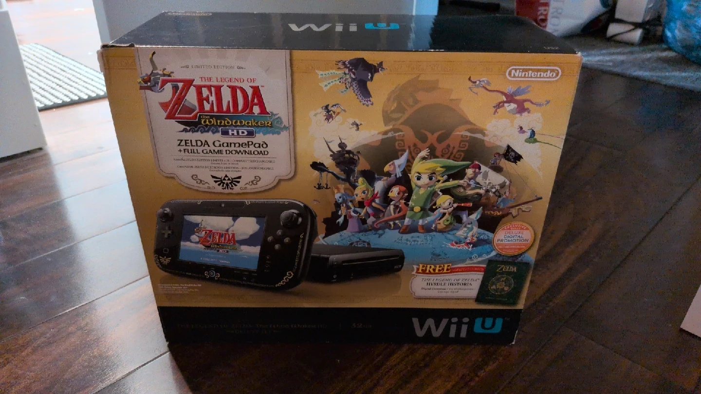 15Selling a Nintendo Wii U Zelda Wind Waker HD Limited Edition. Open to discussing price π It is an old model, used, but well loved. It comes with the Zelda Gamepad and you can buy game downloads from me separately! The console has 32GB of storage. Also included are the Wii U Gamepad, Wii U AC adapter, Wii U Gamepad AC adapter, HDMI cable, sensor bar, and Wii U Gamepad stand. The Wii Remote Plus is also included.