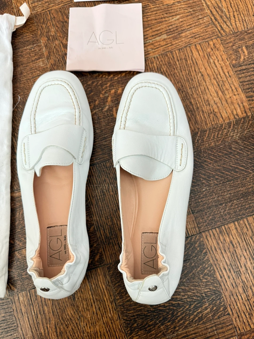 AGL White Leather Loafers - Size 8,5