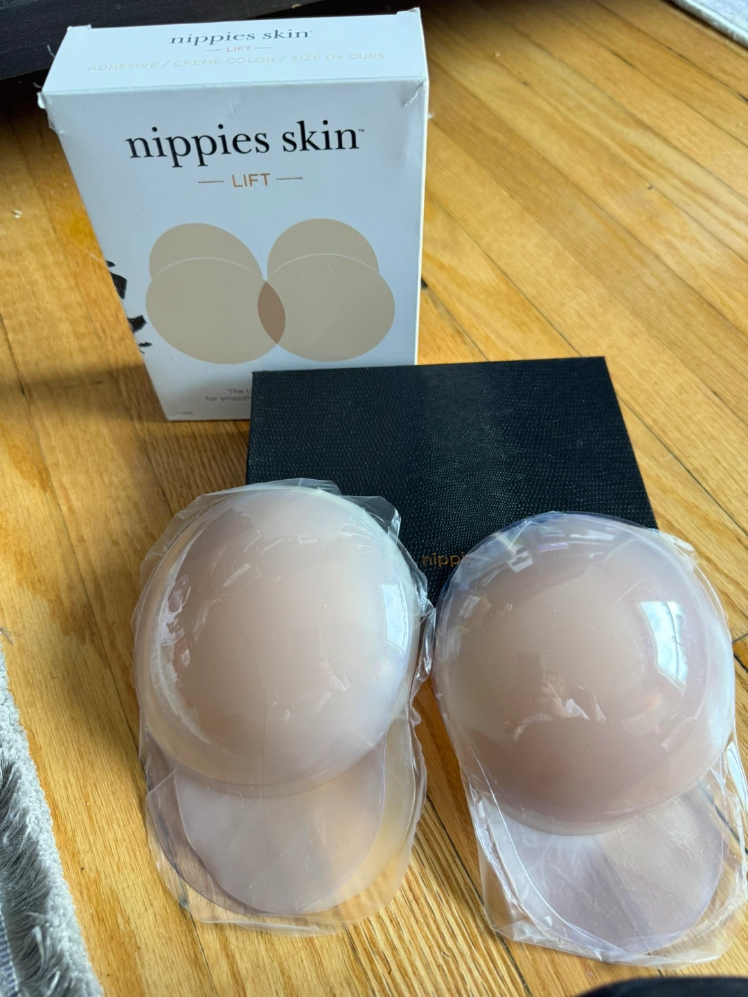 69Selling a new set of Nippies Skin Lift adhesive creme color nipple covers, size D+ cups. The ultimate nipple cover for smooth coverage with an added lift, and the box is included!