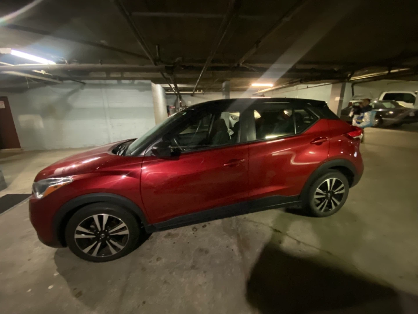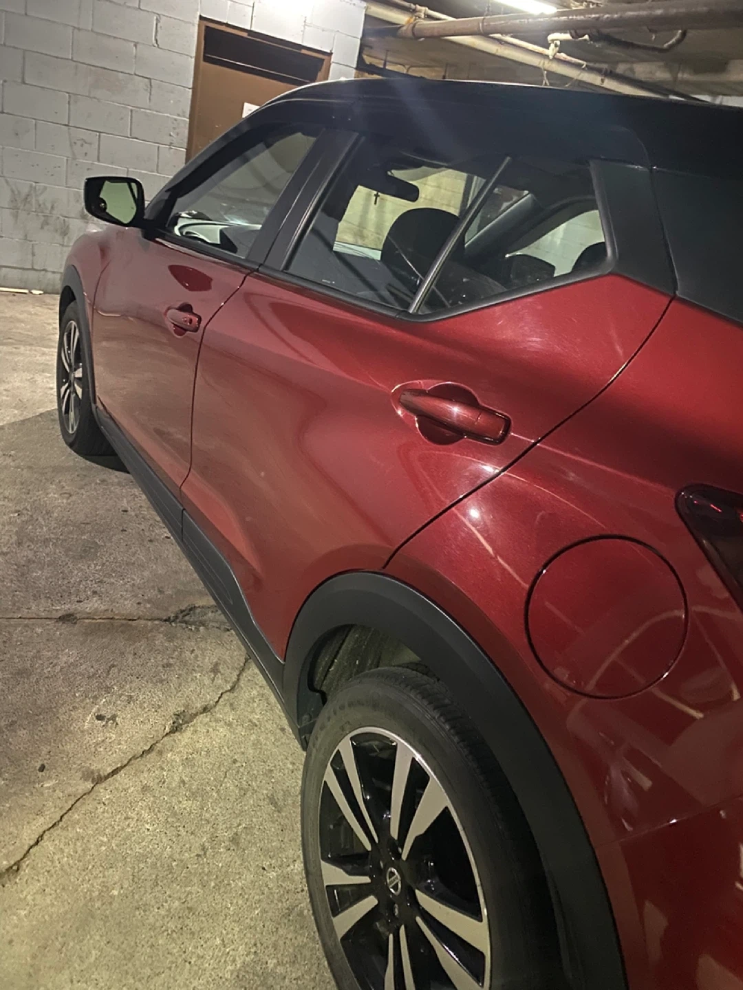 Selling a Nissan Kicks in a striking red and black colour scheme. It's a great compact SUV for city driving and beyond! Feel free to reach out if you're interested or have any questions
