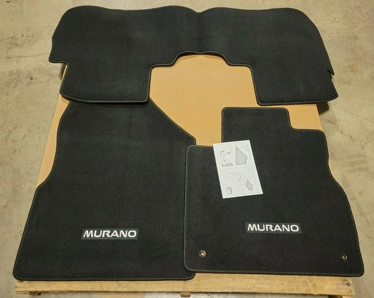 10Selling a full set of OEM black floor mats for Nissan Murano. These mats are new in original packaging. They feature the 'MURANO' logo and provide a custom fit for your vehicle.