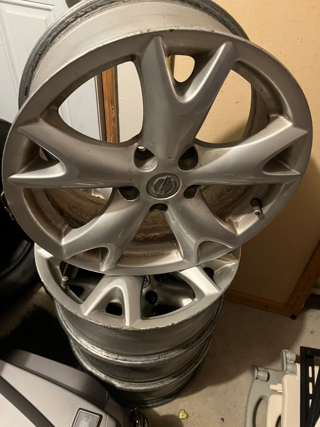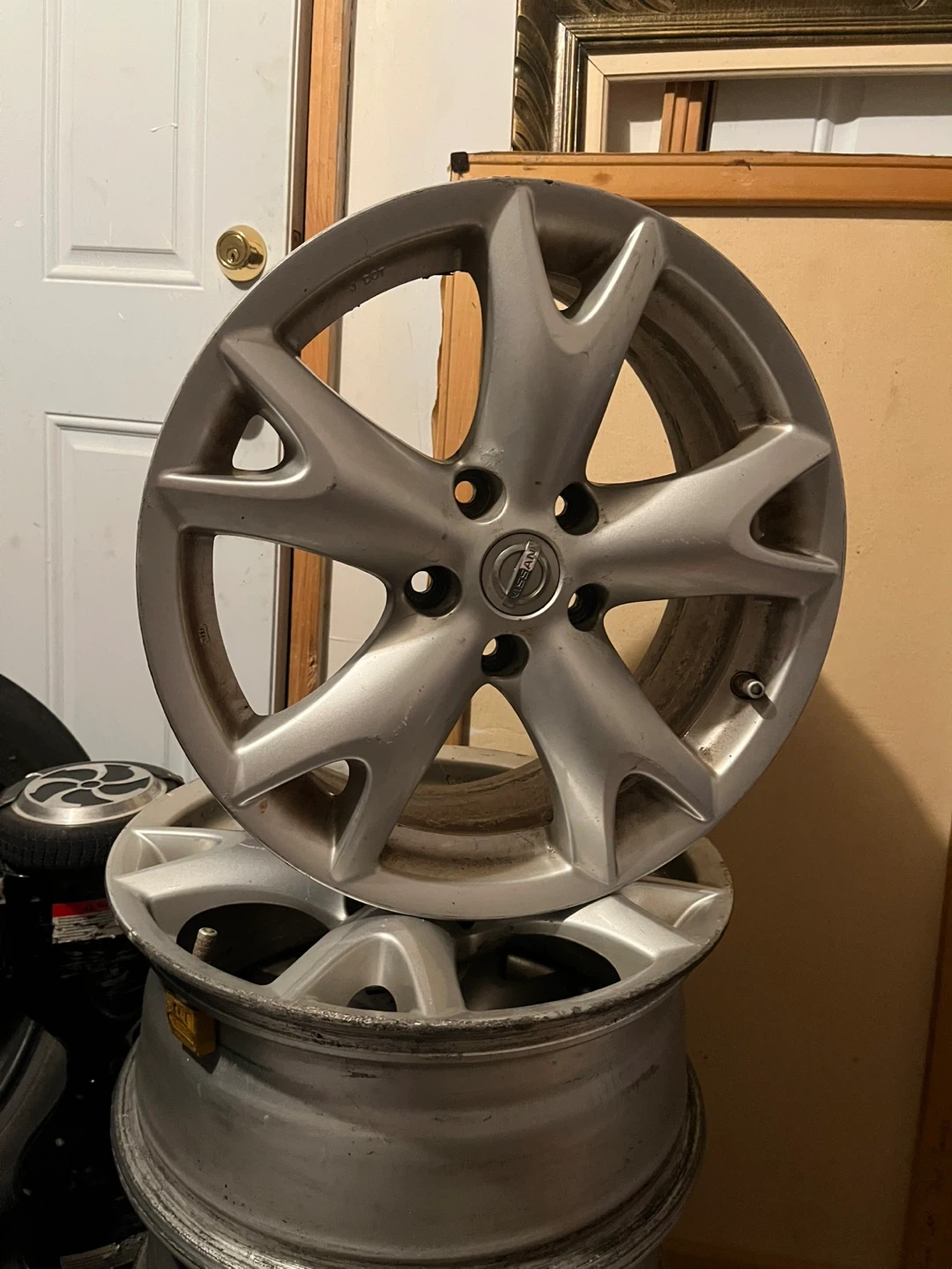 5Selling a set of four Nissan rims in silver. They show some signs of wear, but are still in good condition and ready to be used!