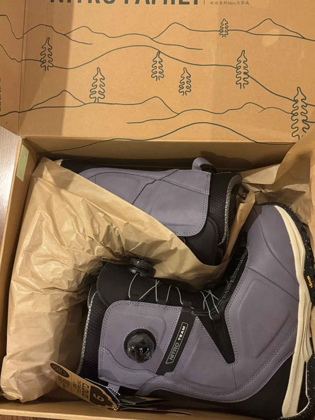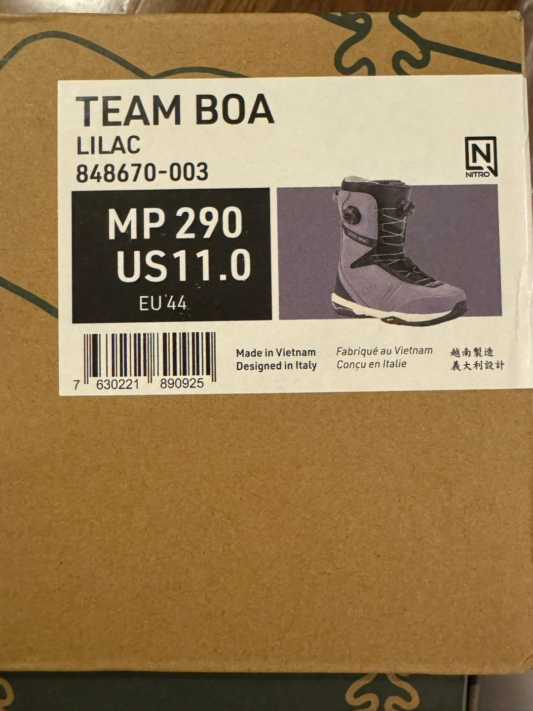 Selling a brand new pair of Nitro Team BOA snowboard boots in Lilac, size US 11. These boots are designed in Italy and made in Vietnam. They come in the original box!