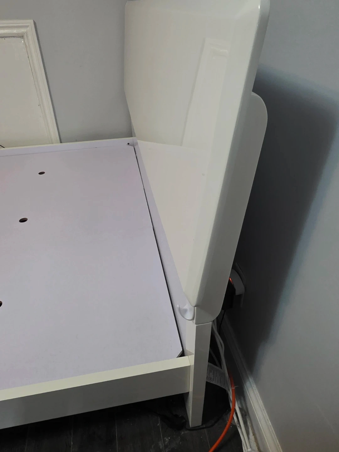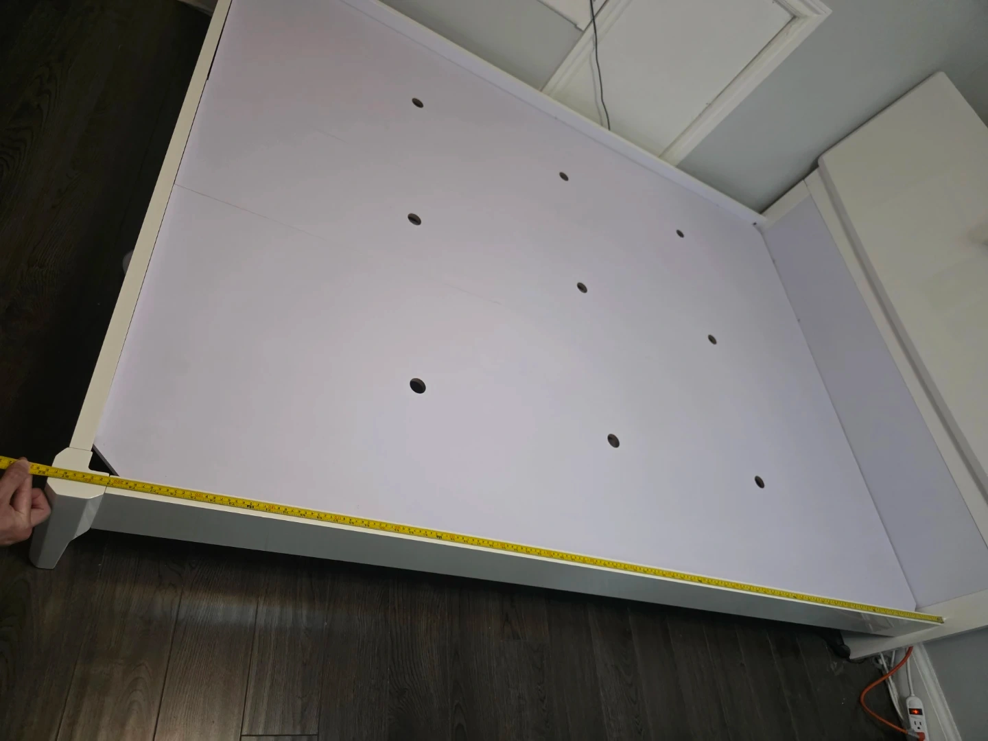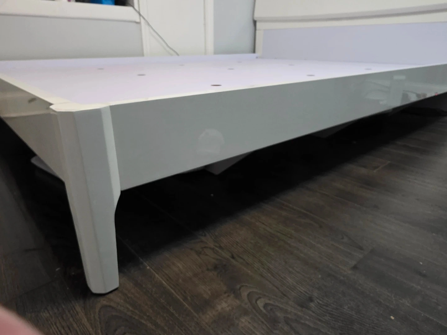 Selling this high-quality, minimalist white bed frame. It is very sturdy with a solid platform base (not thin slats), providing excellent support for your mattress and preventing sagging.