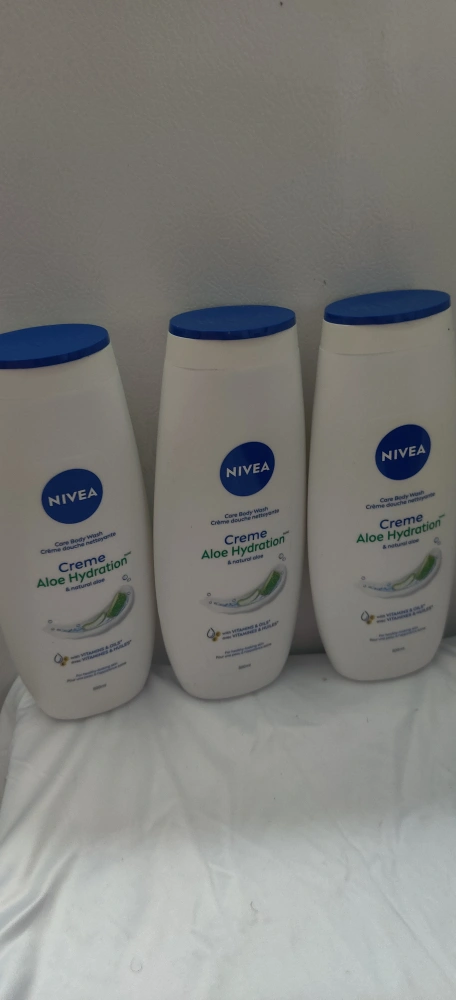 Selling 3 bottles of Nivea Creme Aloe Hydration body wash. It contains natural aloe and is enriched with vitamins and oils for healthy-looking skin. Each bottle contains 500ml of product