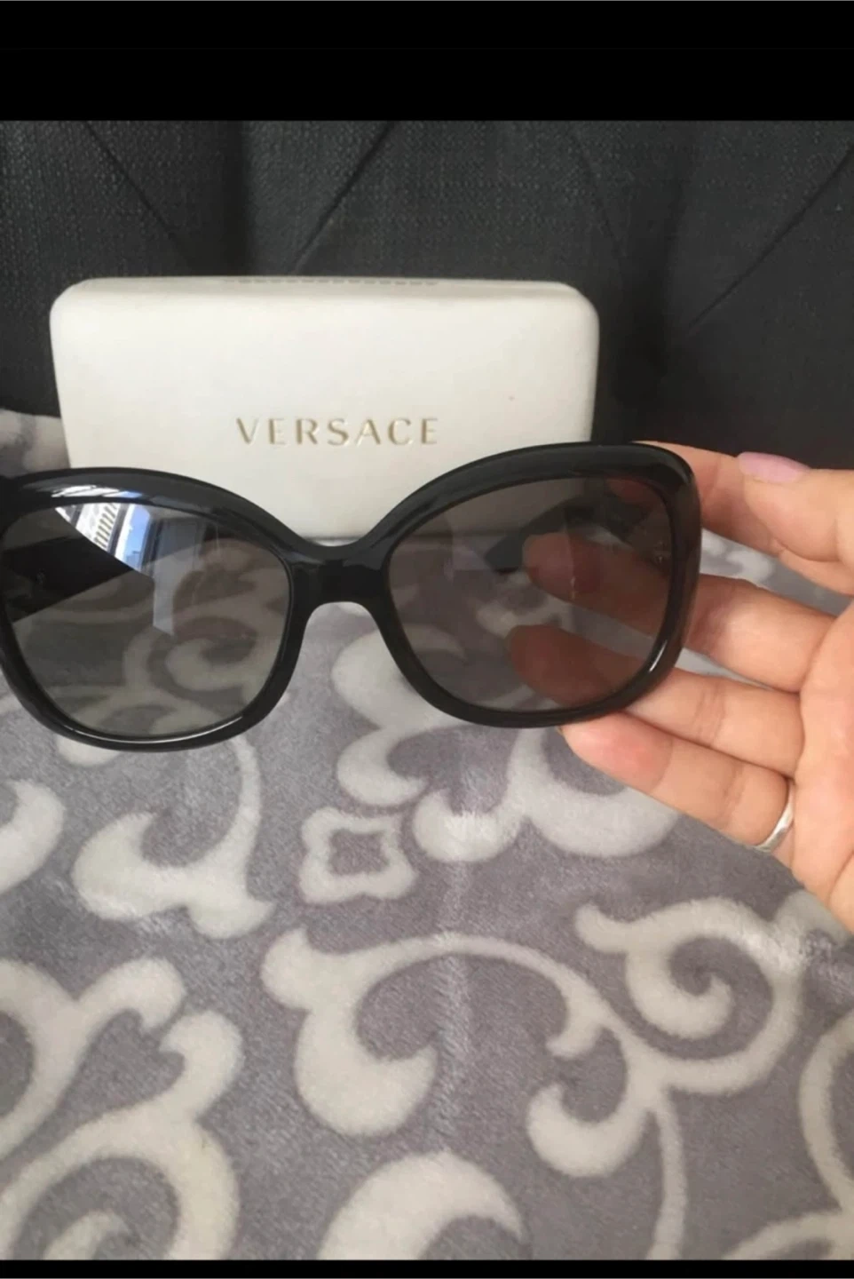 Versace-black sunglasses with silver Logo.