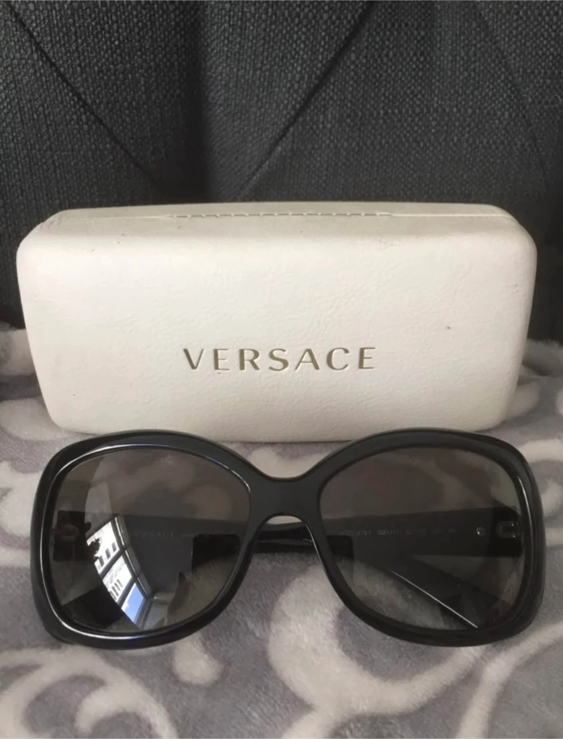 These are Versace sunglasses in black. They come with their original case. The model number is MOD. 4187 and the lens width is 56mm.