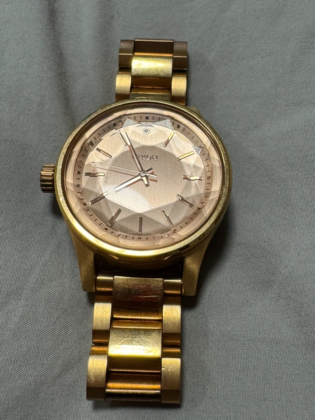 20Selling a Nixon The Facet 38 watch in gold tone. It has a 200M stainless steel Japan movement.5.5 inch band.
