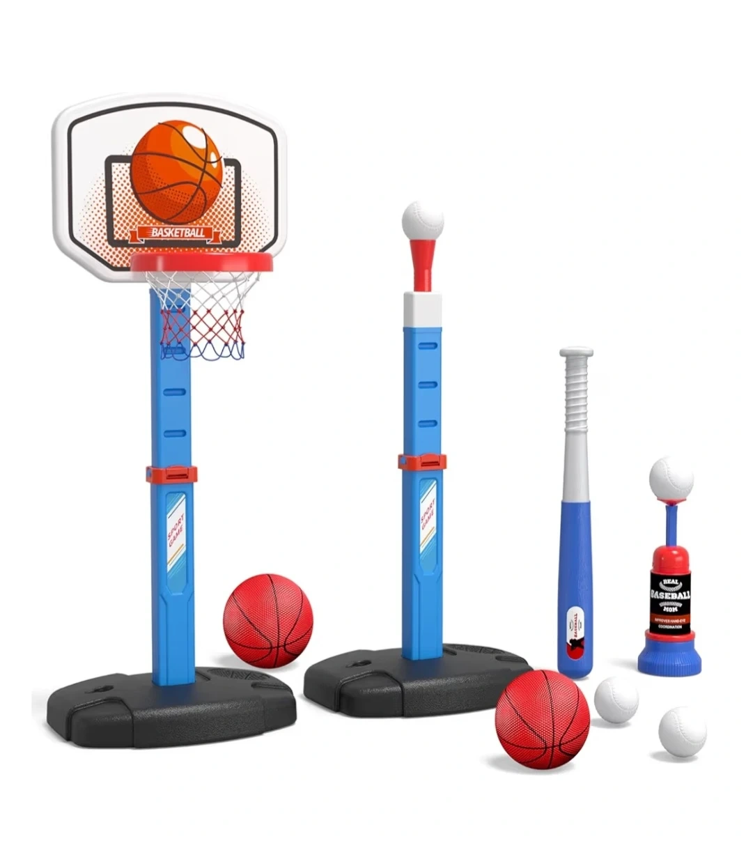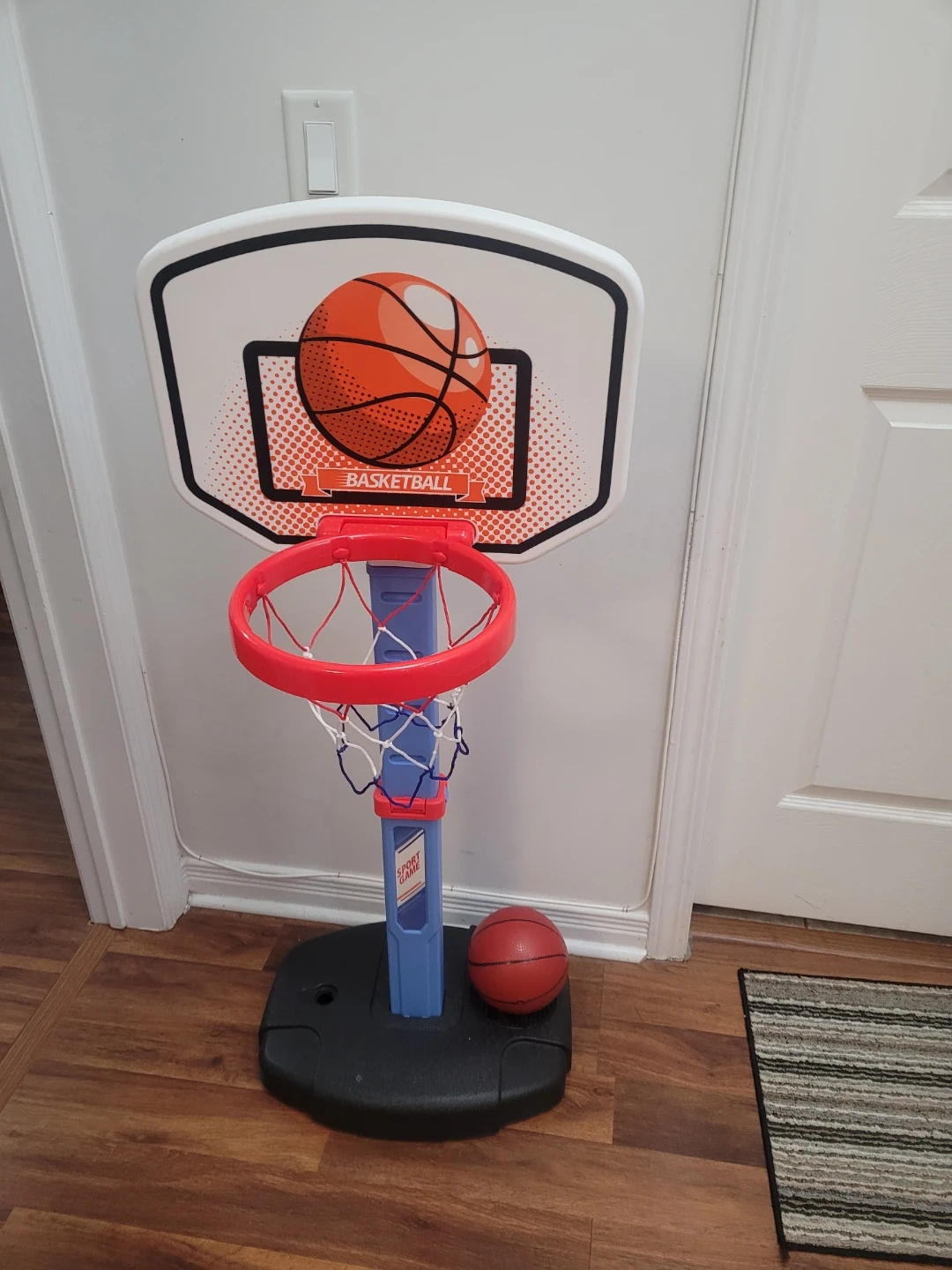 This adjustable basketball hoop set is perfect for your little ones! It's in great condition and ready for some fun games. It's easy to set up and adjust as your child grows, making it a great way to encourage active play. Get ready for hours of entertainment!