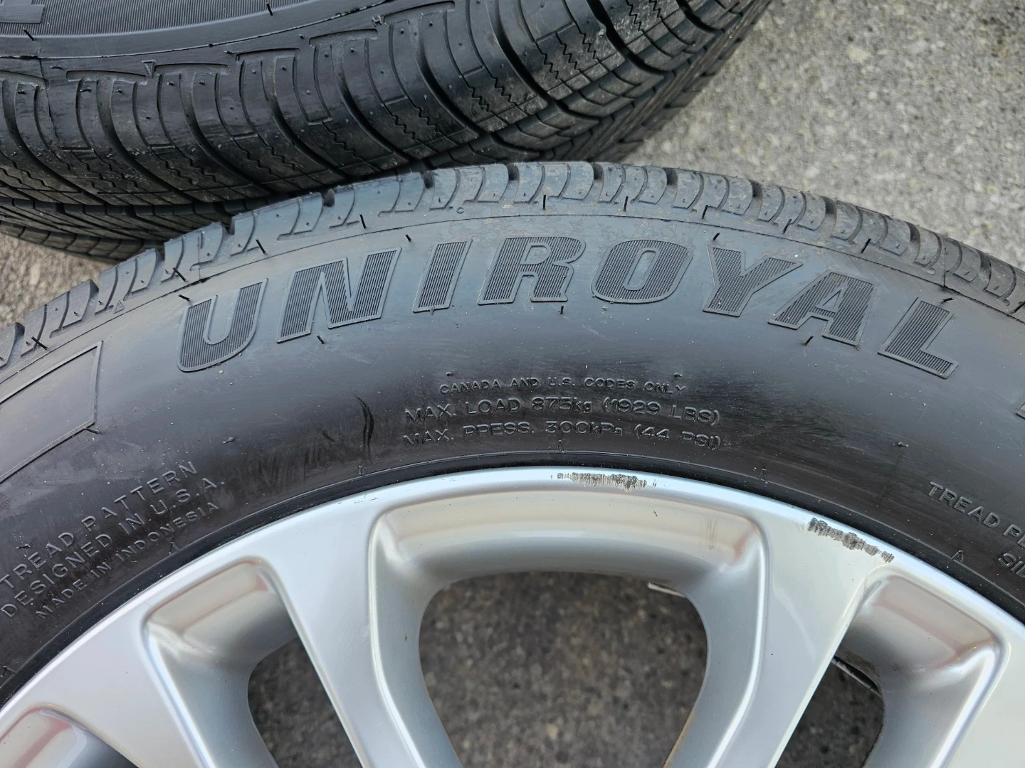 Set of 4 original 18" Volvo xc60 rims with uniroyal tiger paw all season tires on them 235/60 R18. Rims and tires are in good shape, no bend, no cracks, no damage. Tires are almost new, no puncture, no leaks