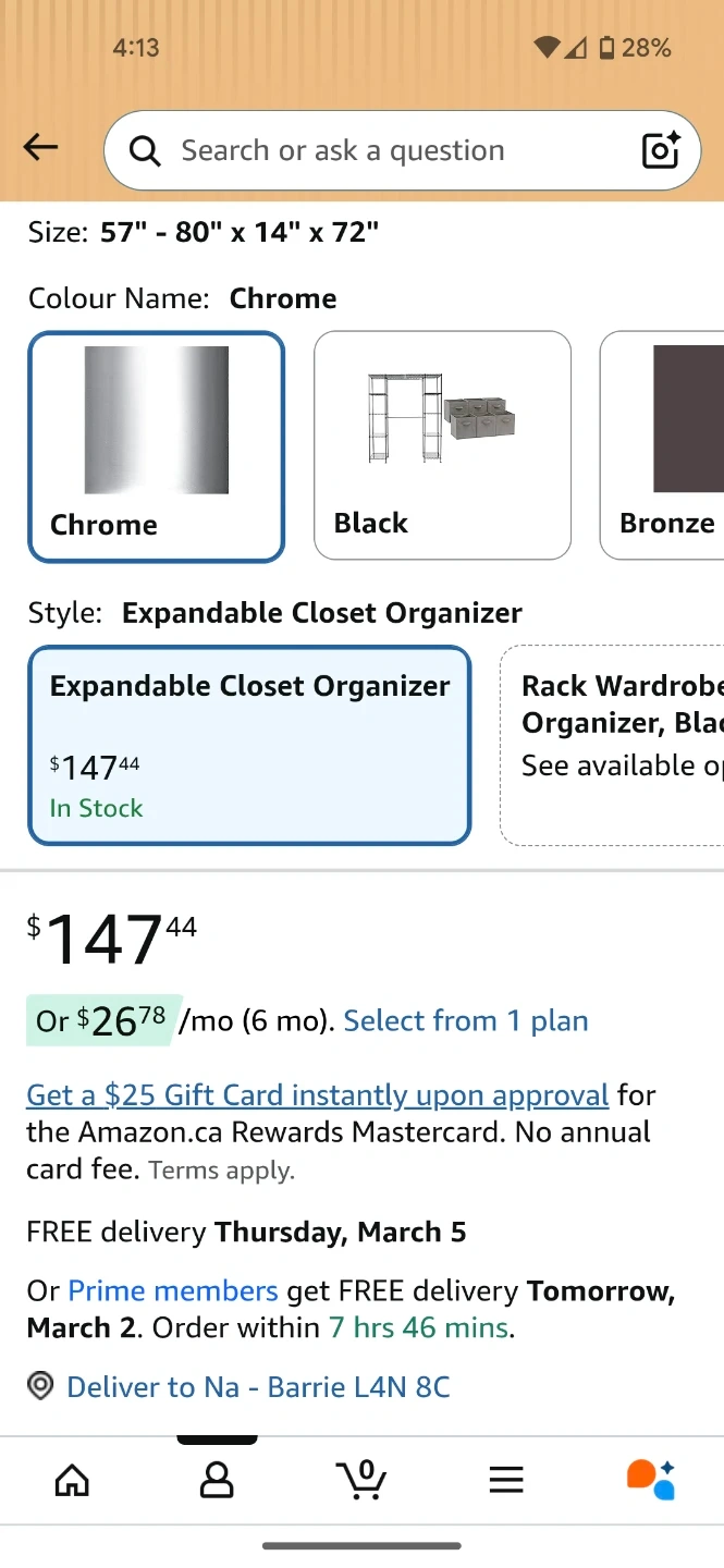 Amazon Basics Expandable Closet Organizer - Chrome