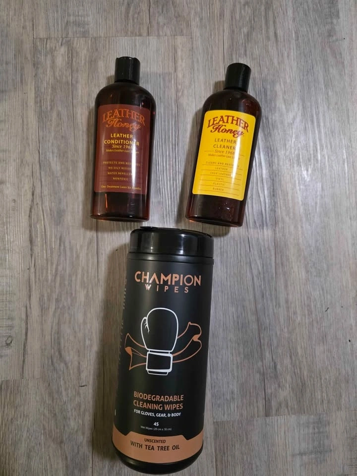 The gloves have been used for less than two months (9 sessions total) and have been meticulously maintained to preserve the leather and hygiene.