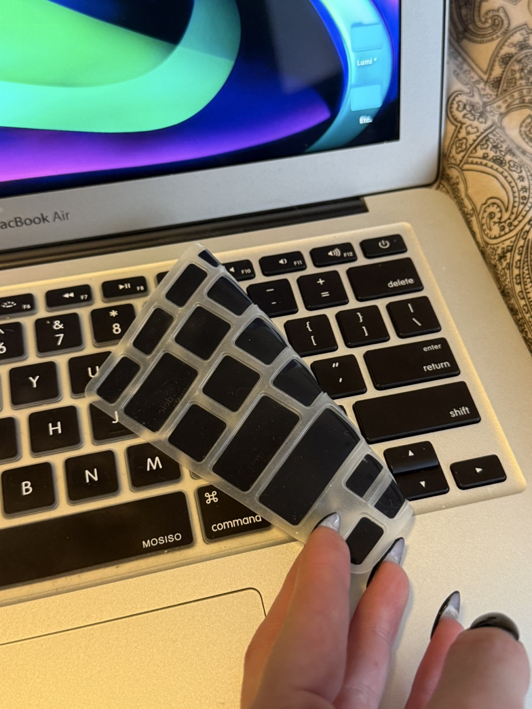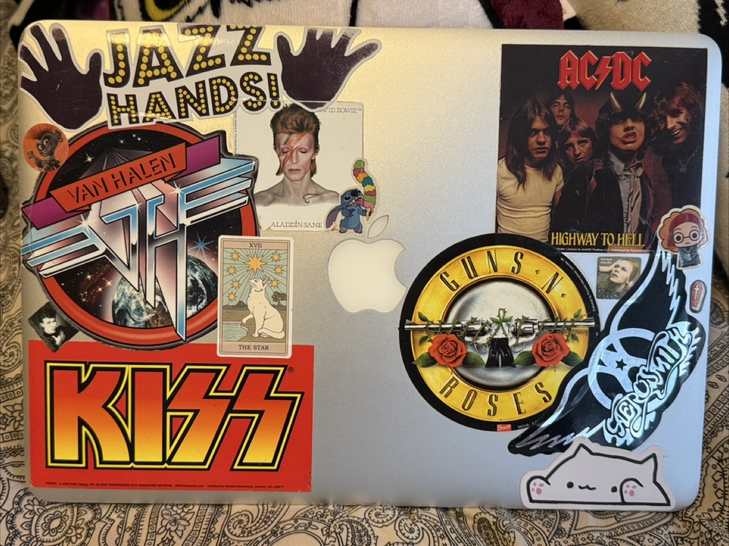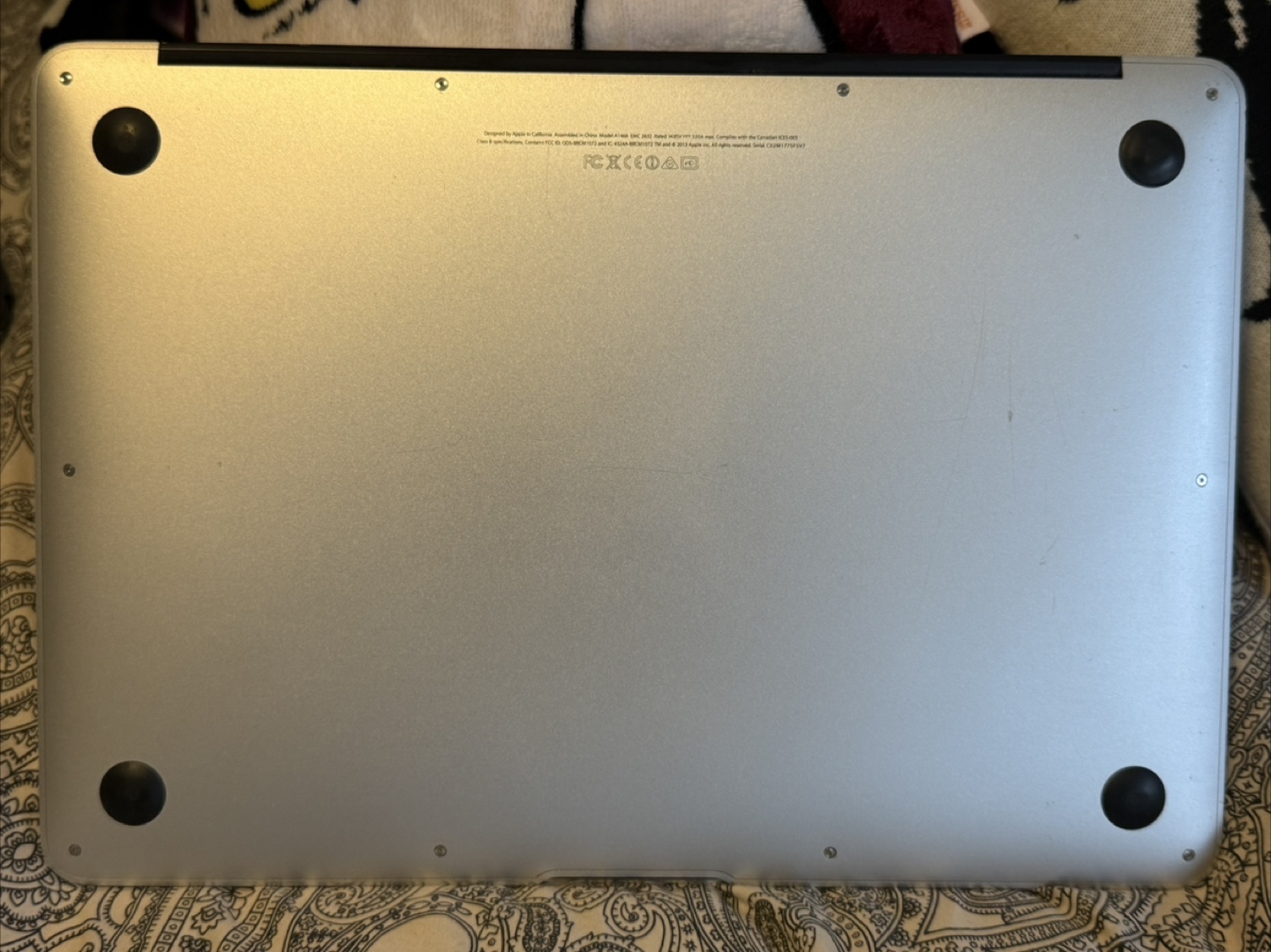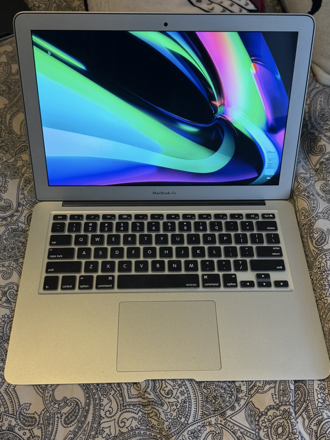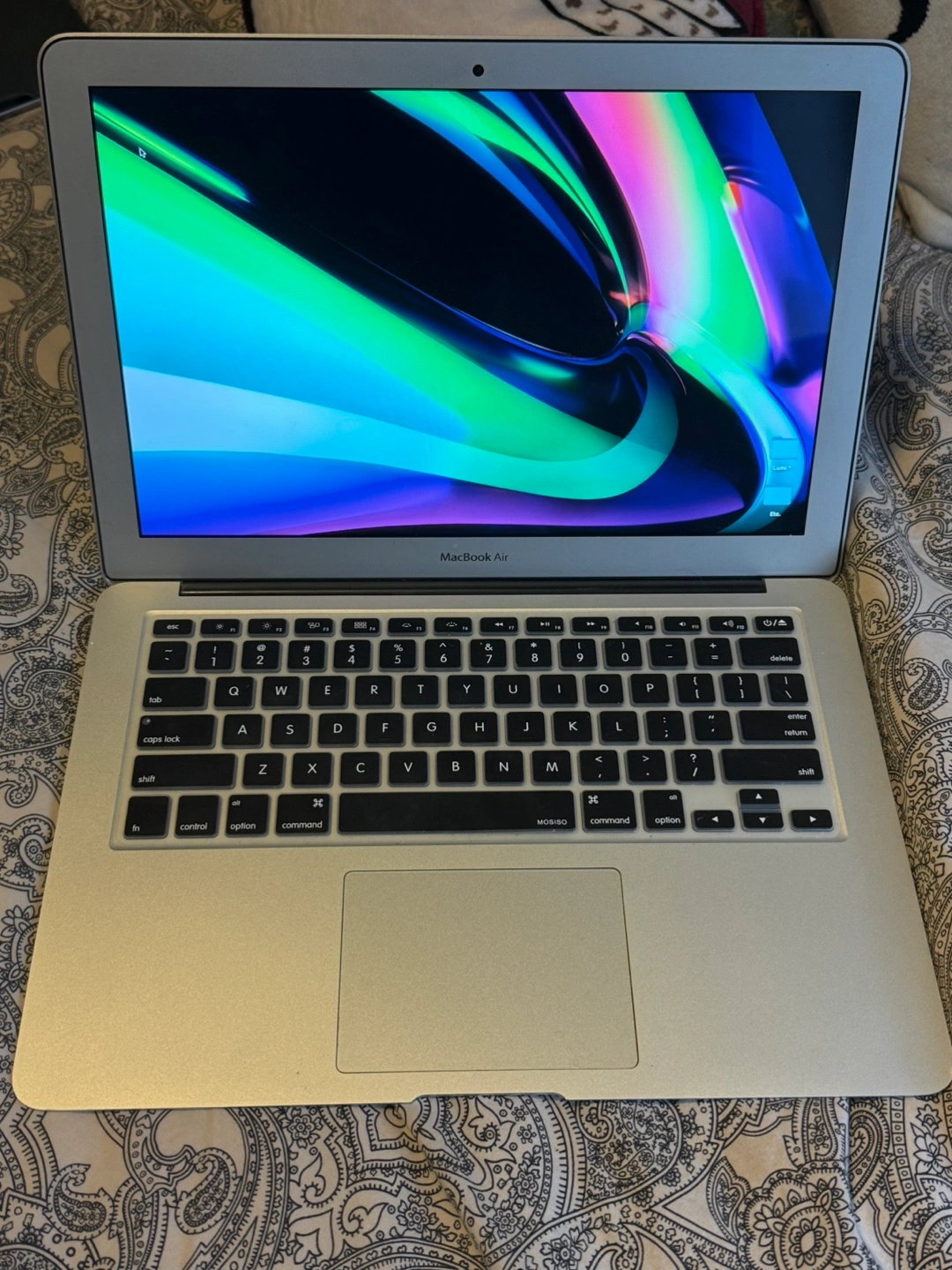 Classic Apple MacBook Air. This is the 2013 model A1466. Comes with the charger and silicone keyboard cover. Has a bunch of cool band stickers on the lid. Works great, ready for a new owner.