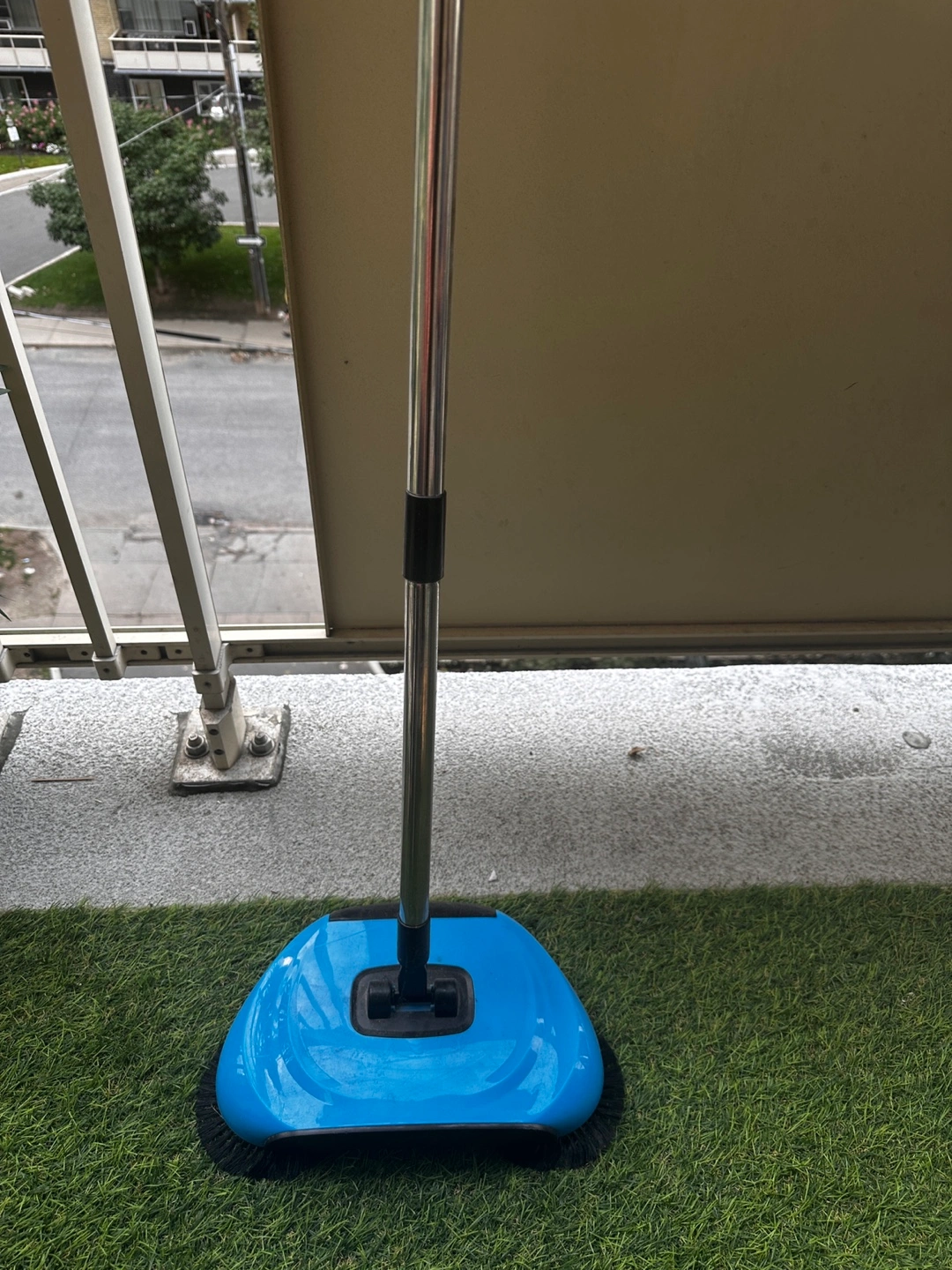 I'm selling a blue floor sweeper. It's in great condition and ready to help keep your floors clean! The sweeper features a long handle for easy use and a compact design for convenient storage