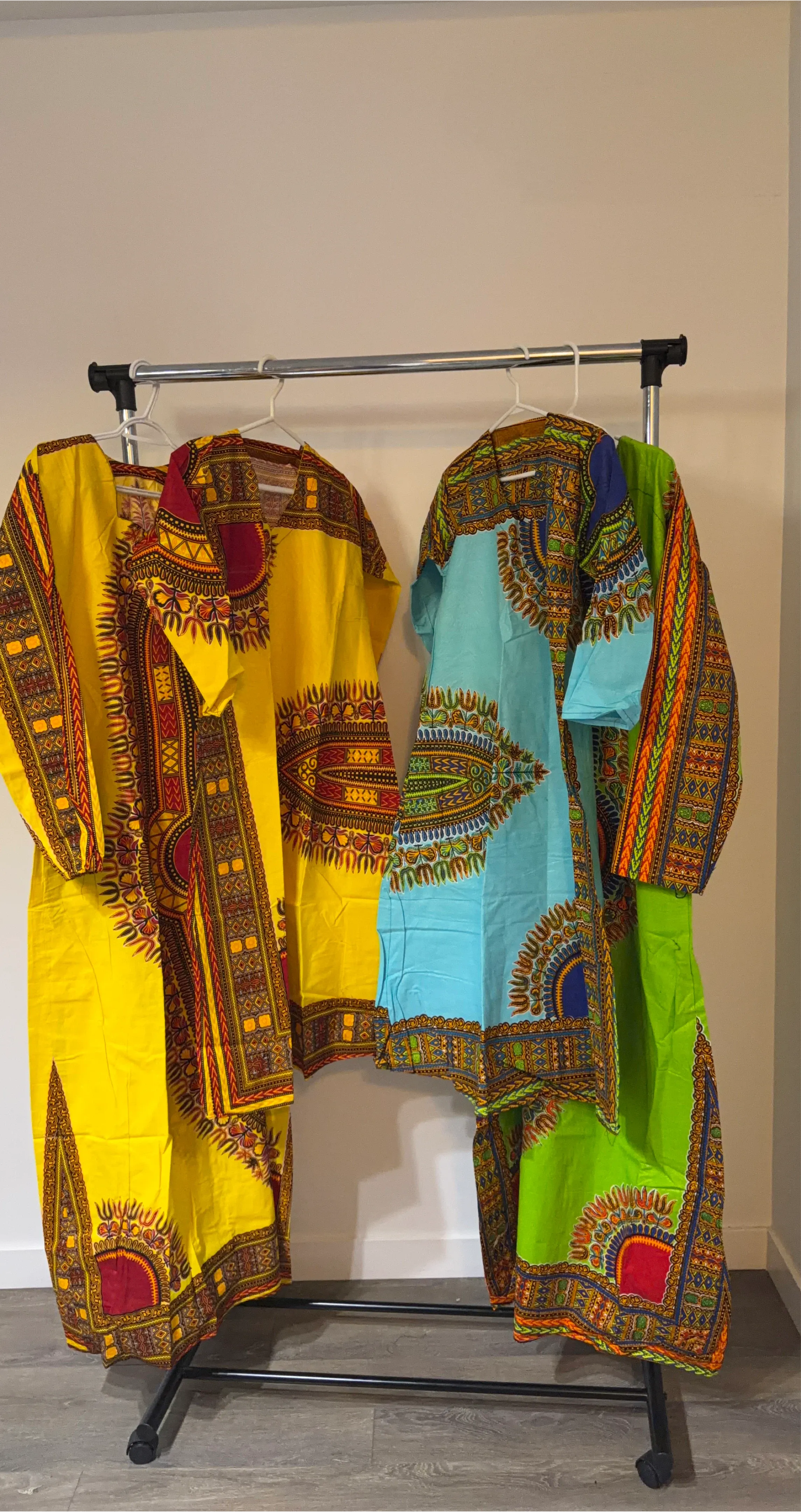 Selling these vibrant African print dashikis! They come in yellow, blue, and green. Perfect for adding a pop of colour to your wardrobe