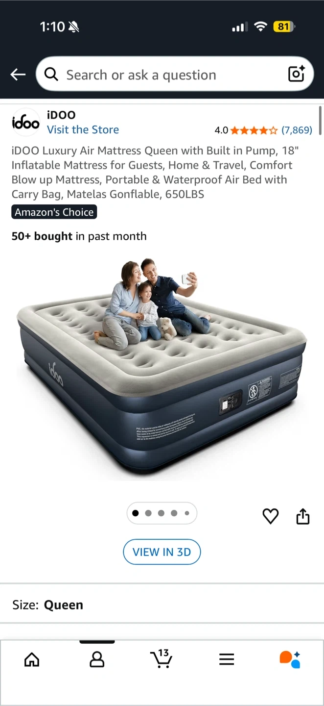 This iDOO twin air mattress offers quick self-inflation and a comfortable sleeping surface. It's built with a pump for easy setup and deflation. It comes with a carry bag for home, portable camping, or travel use.