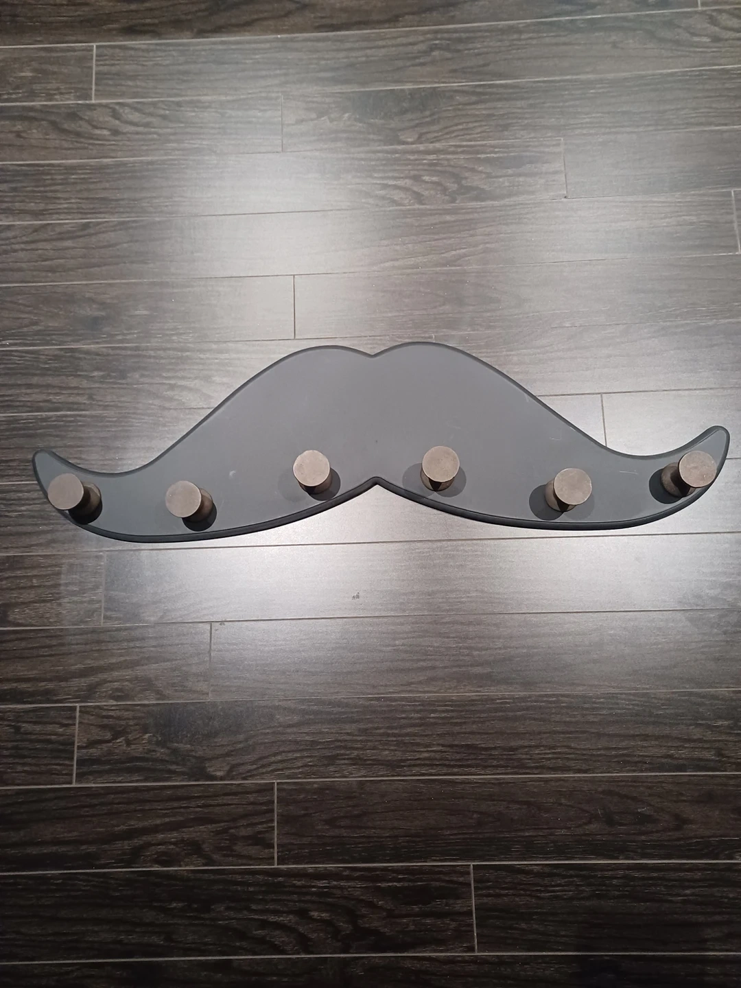 Modern mustache shaped wall decor/hanger. Wood material. Great for entryway to hang jackets, hats, etc. In excellent condition from a pet-free, smoke-free home.