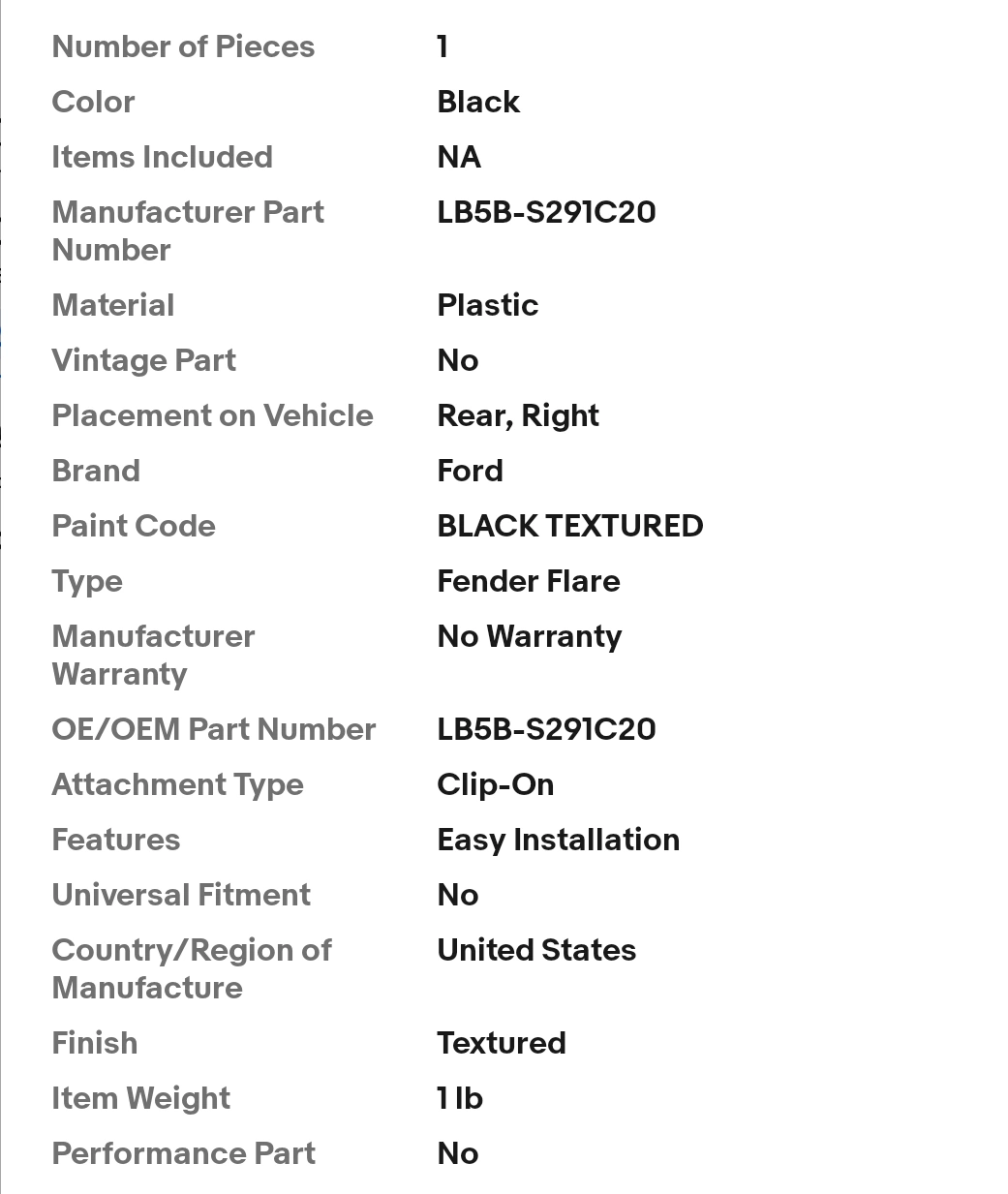 Black fender flare. Made of plastic. Can be easily installed on the rear, right side. It would be great to have if yours is damaged. 2020-2024 Ford Explorer REAR Fender Flare RH Right Passenger.