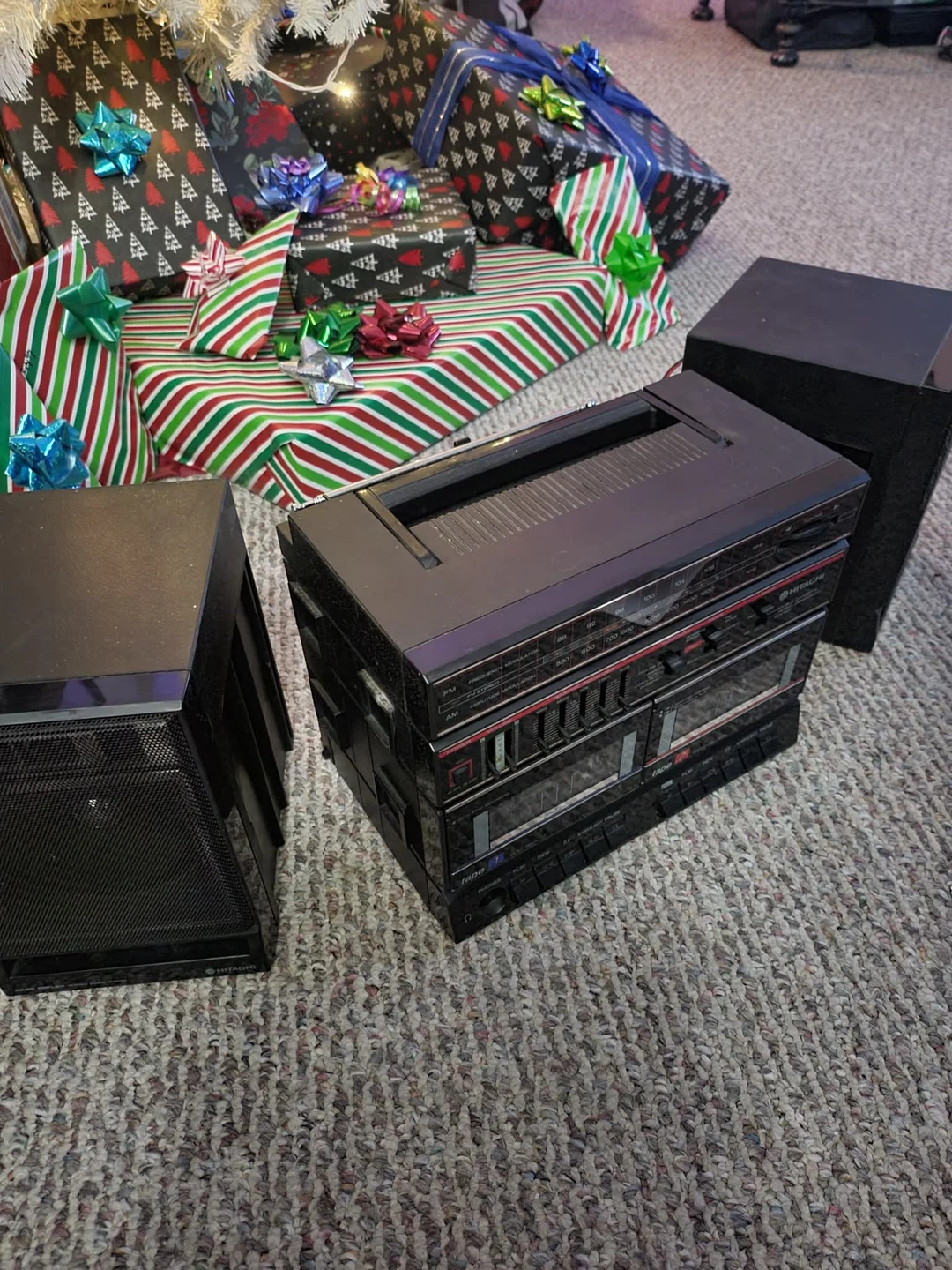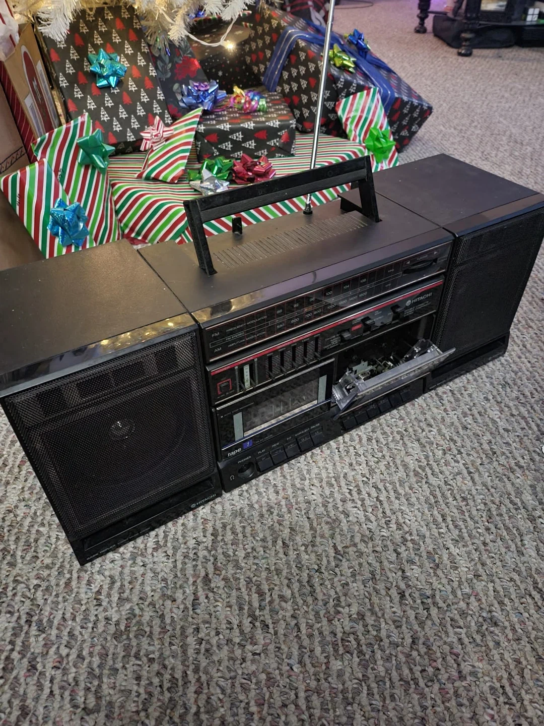 Vintage Hitachi TRK-W540HC Boombox Radio Stereo Cassette w/ Detachable Speakers. The condition is good with some visible scratches. Operation is good. Am/fm reception is very good bringing in all local stations as expected. Audio in and headphones jack work. Antenna straight and intact. Both cassette decks are working and play tapes well. Smoke free. $125 firm . Cash only. No delivery . Pick up in Woodstock. First come, first serve no holes.