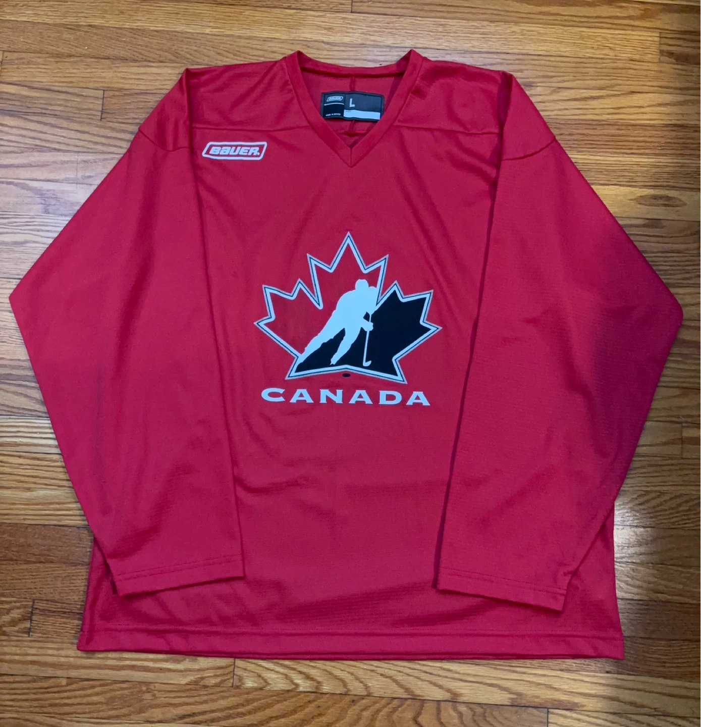 Vintage Bauer Team Canada Hockey Jersey - Size L. Please note there is some dark marks inside the maple leaf as shown in photos. $20 cash, porch pick up Kennedy and Eglinton.