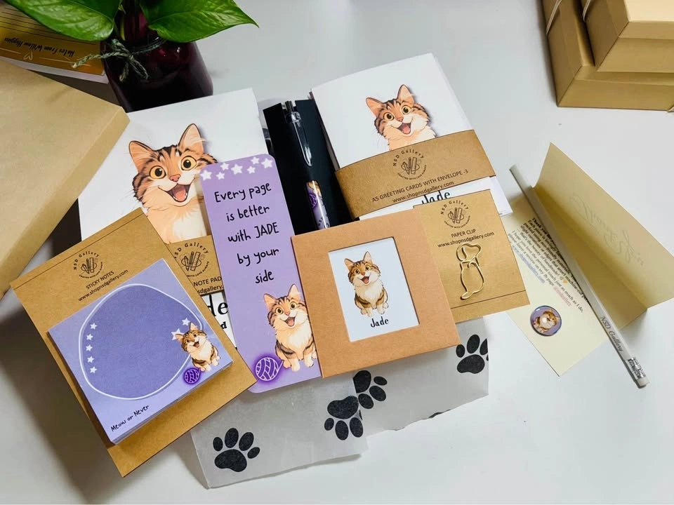 I create custom stationery sets with your pet’s illustration — cute, emotional, and totally unique. Notepads, sticky notes, bookmarks & cards, gift-ready packaging. Great for pet moms & dads, Valentine’s gifts, birthdays, or remembering a beloved pet. Let me know if you're interested!