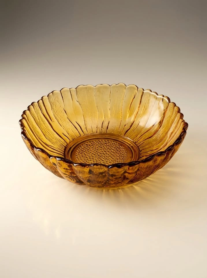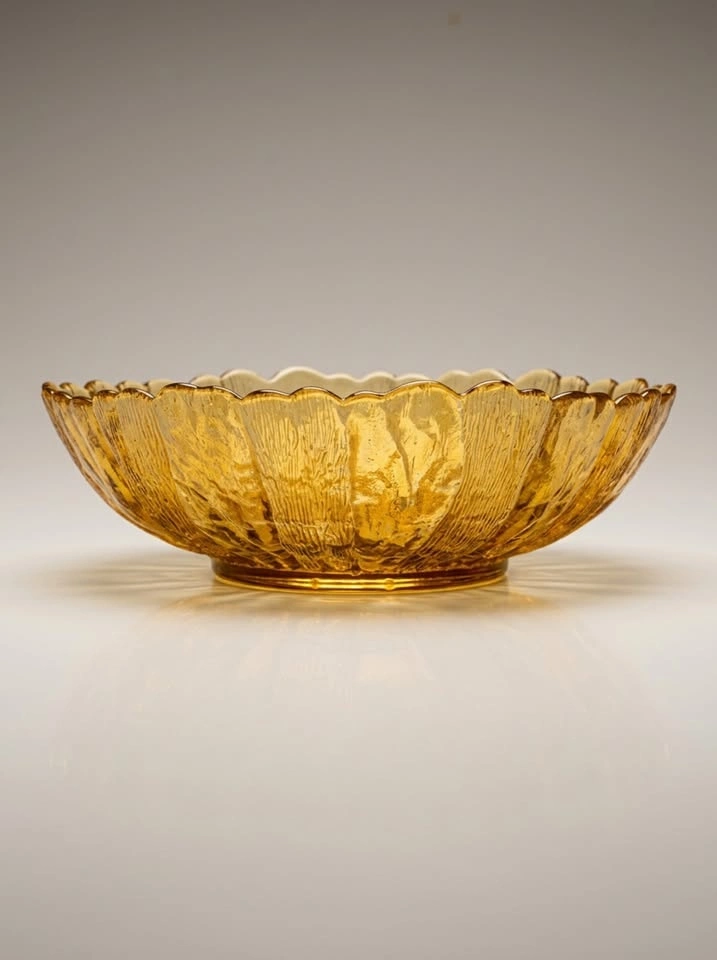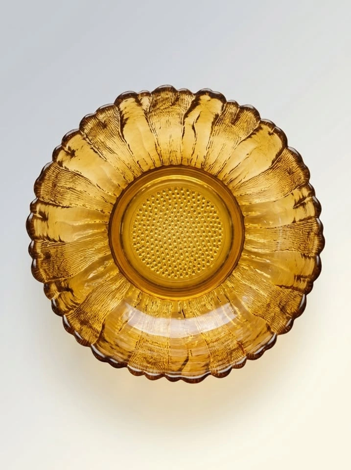 Vintage Amber Pressed Glass Bowl - Scalloped Edge
