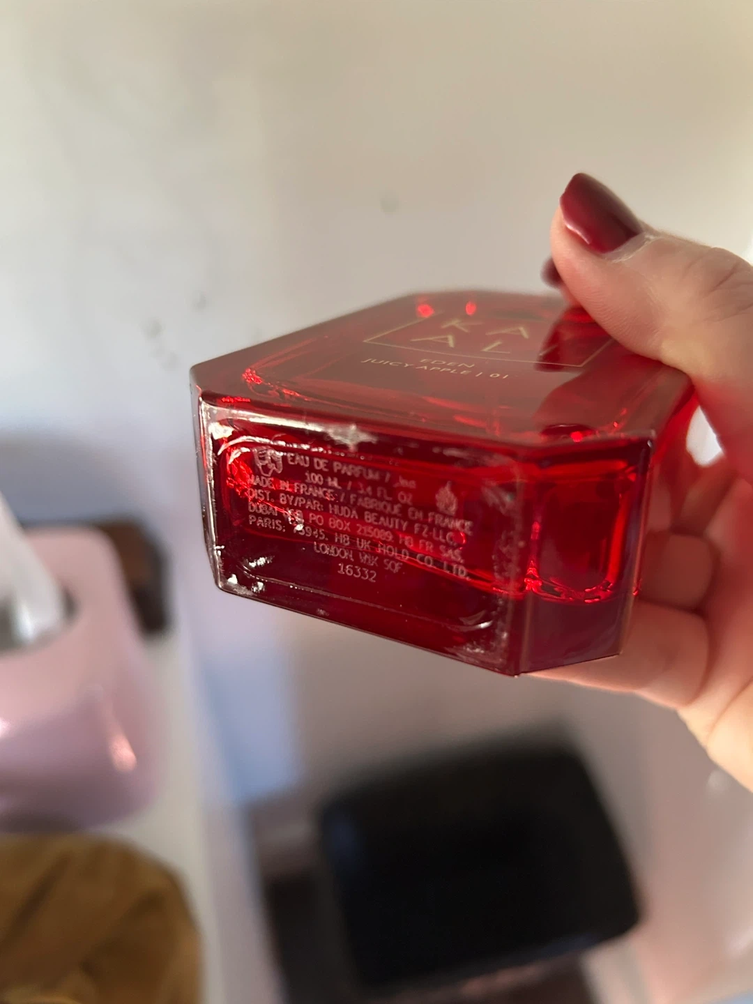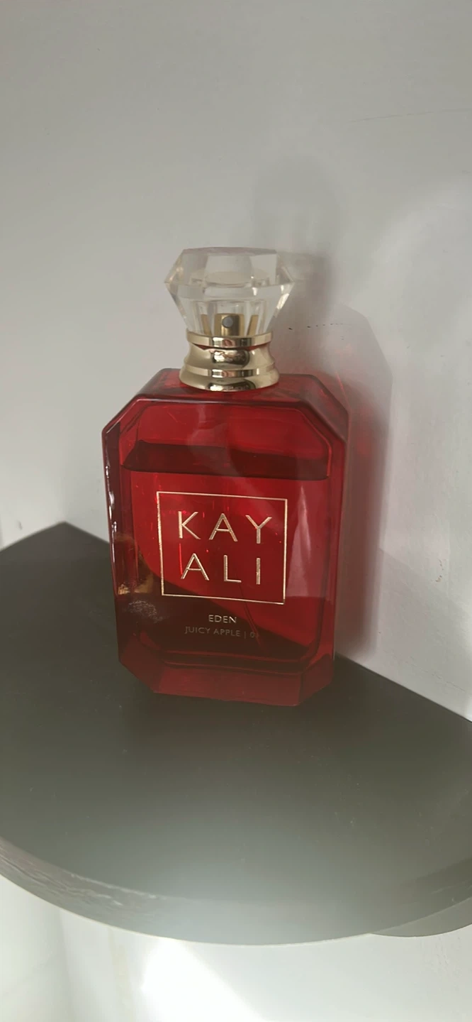 This is Kayali Eden Juicy Apple | 01 Eau de Parfum. It's a 100ml bottle. Made in France. About 1/3 used, it smells divine but I don’t reach for it.