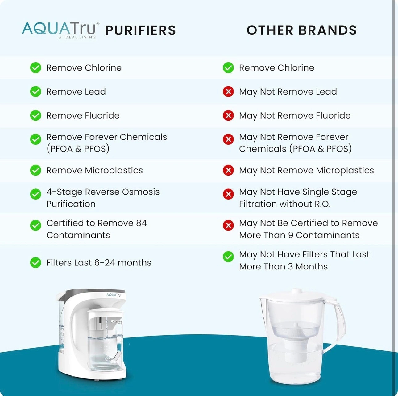 IS YOUR WATER SAFE TO DRINK? Studies continue to pour in regarding Toxins, Hormones, Microplastics, Cancer-linked contaminants, known Carcinogens and other toxins discovered in our Tap Water, Filtered Water…and yes, even Bottled Water. Arsenic, lead, chromium, and drug residues are commonly found in municipal drinking water. AQUATRU's patented Ultra Reverse Osmosis water filtration system is CERTIFIED to remove such contaminants and many more!