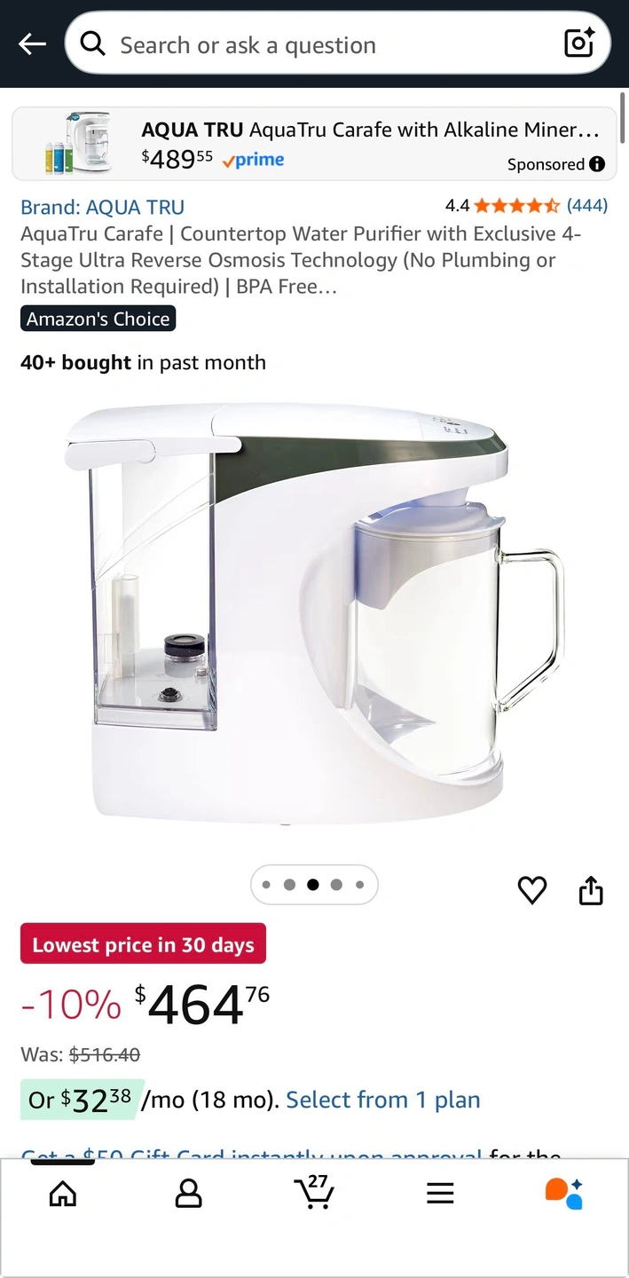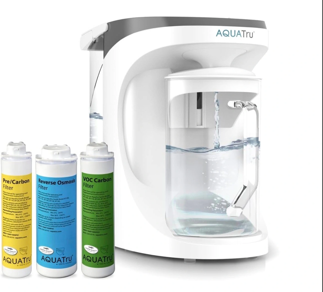 NO PLUMBING OR INSTALLATION required - takes just minutes to set up. AquaTru’s Trusted & warrantied RO countertop system COSTS CONSIDERABLY LESS than fully installed under-the-counter RO systems, while at the same time, delivering often Cleaner, Purer, and Better Tasting Water. Why waste money & add to landfills with bottled water (93% recently found to contain micro-plastics)? Forget about the hassle & cost of buying bottled water