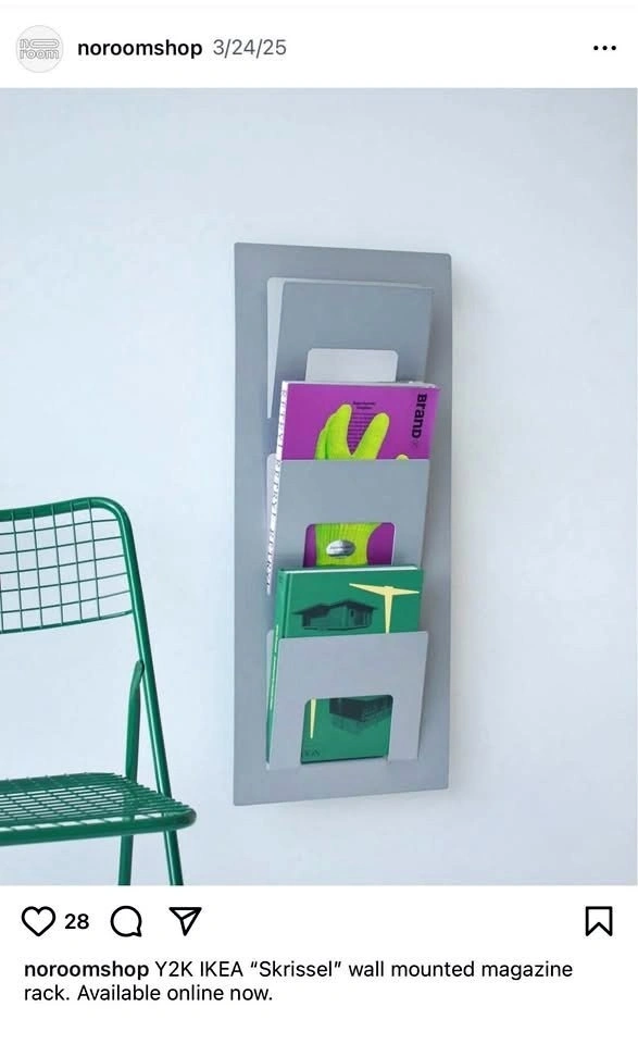 Y2K nostalgia with this vintage IKEA "Skrissel" wall-mounted magazine rack.