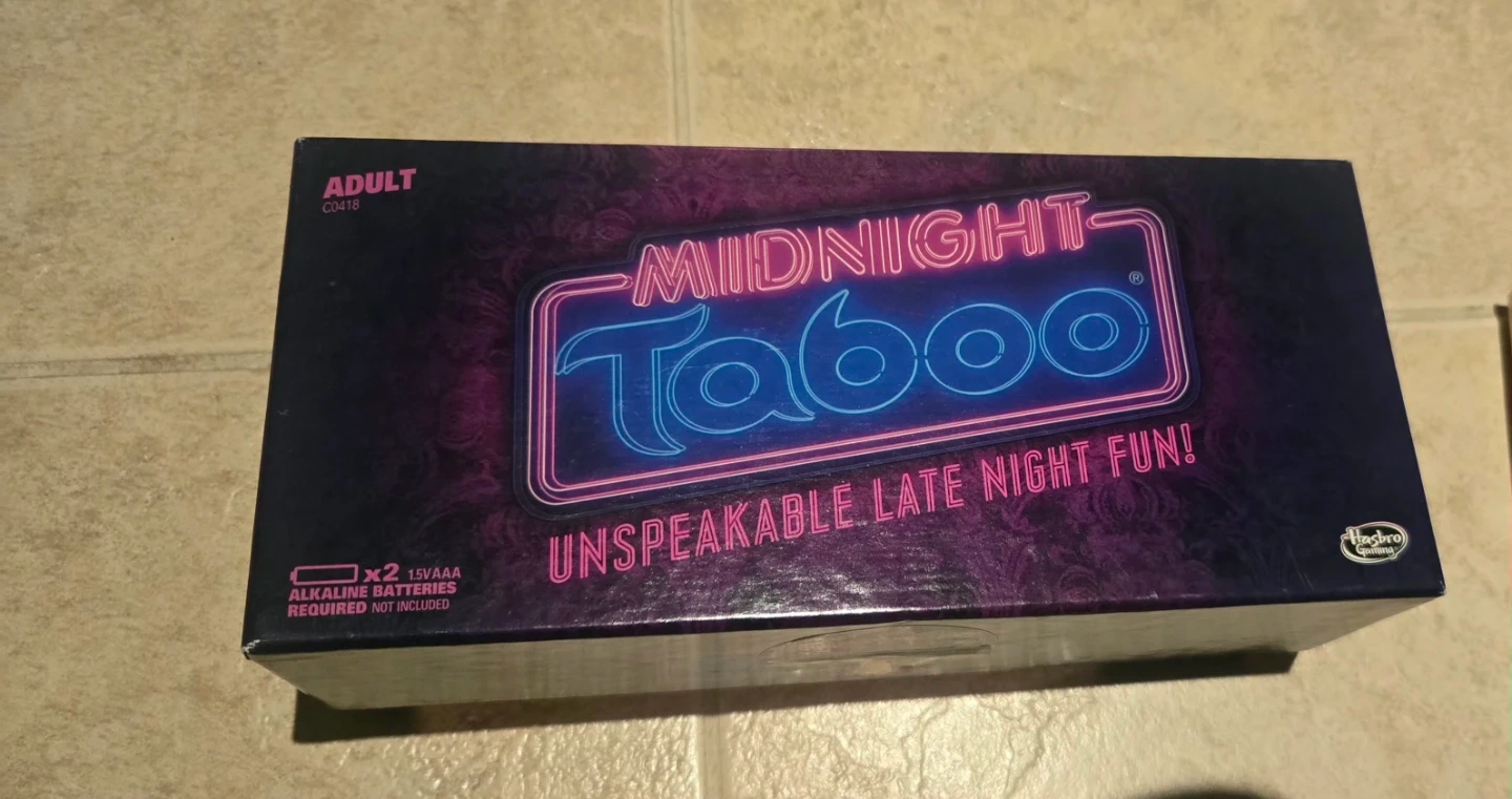 This is the Midnight Taboo adult party game. It includes the game unit and cards for late night fun. Batteries are not included.