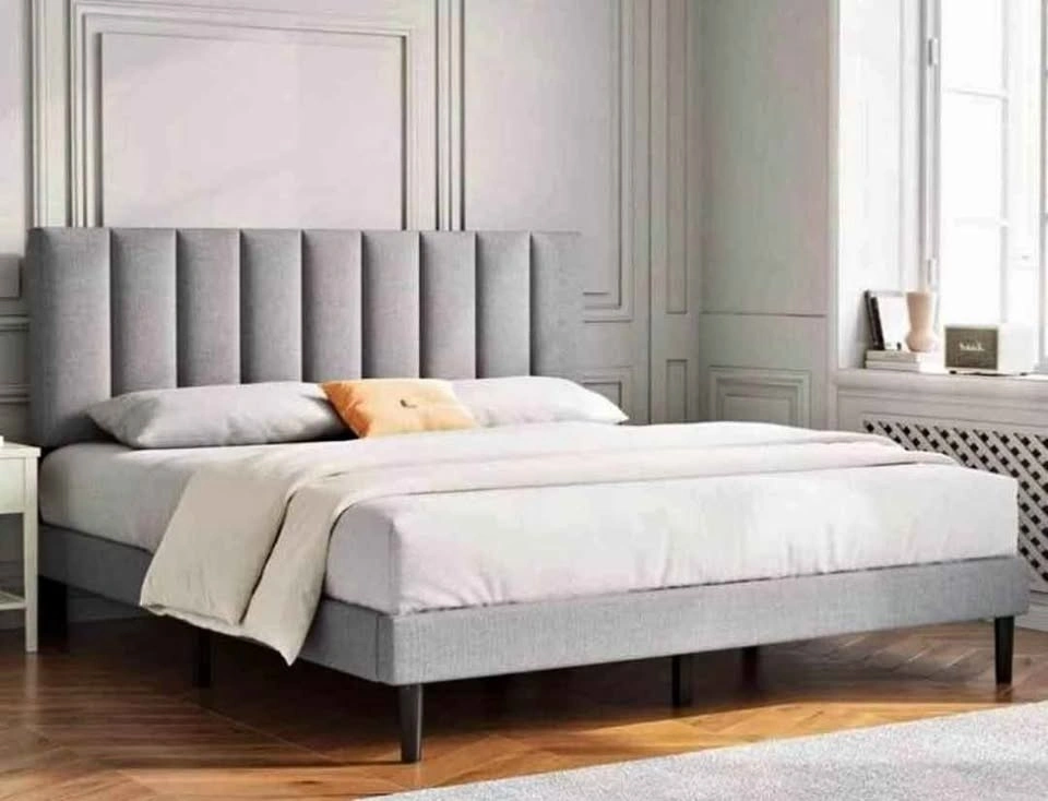 Grey Upholstered Full Size Bed Frame w/ Channel Headboard