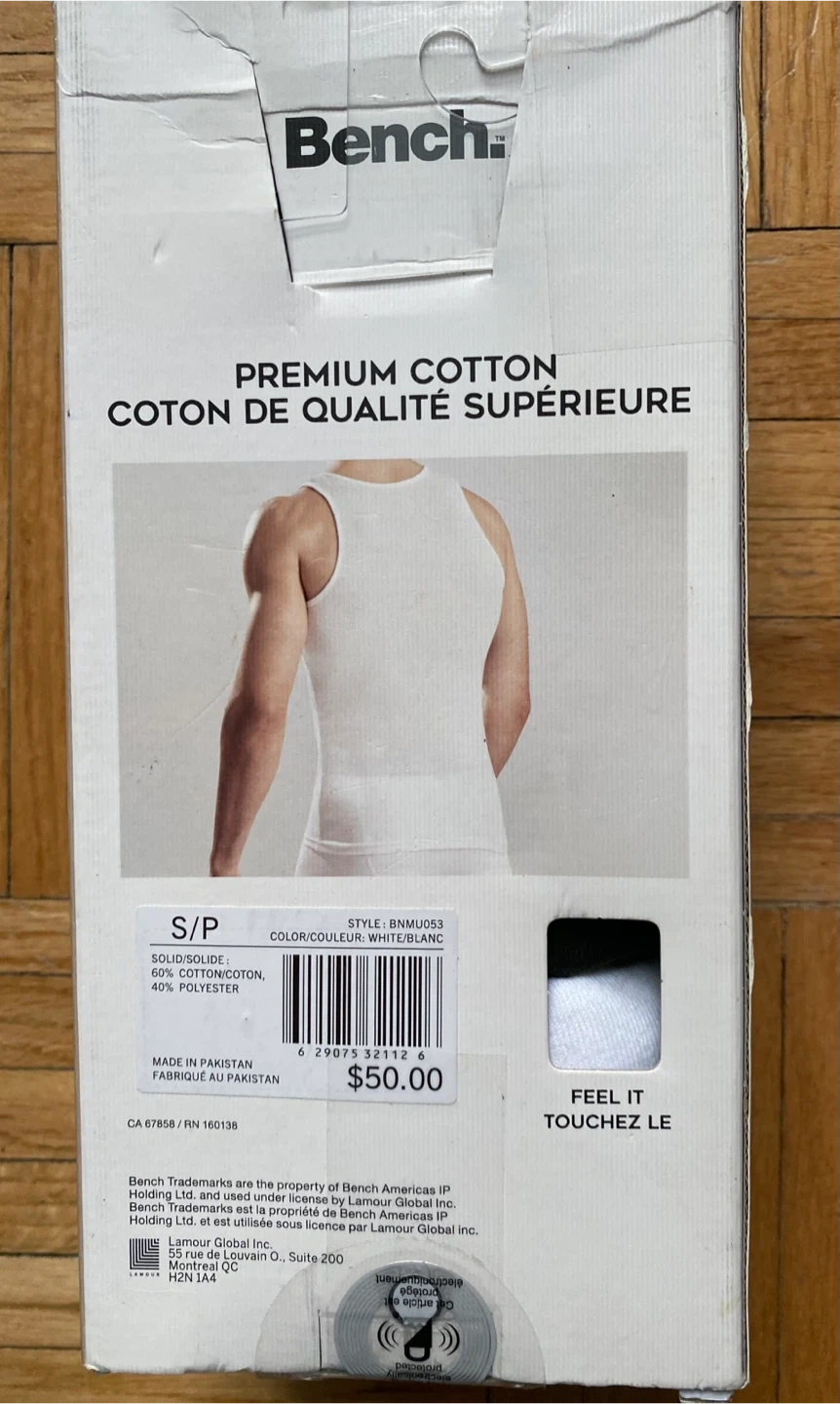 This is a 3- pack of Bench men's premium cotton tank tops. They're made from 60% cotton and 40% polyester. These tanks are great for everyday wear.