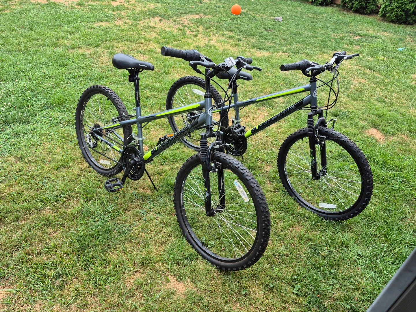 2 Super Cycle Nitro 24XT youth mountain bikes. 21 speed. 24" wheels, 12.5" frame. Retail at $229 for 1. Please visit Canadian Tire website for more details. Will sell for $75individually or will take $125 for both. They have been stored in a shed and barely used. My kids grew too quickly to be able to get much use out of them. Still have nubs on the tires. Serious inquiries only.
