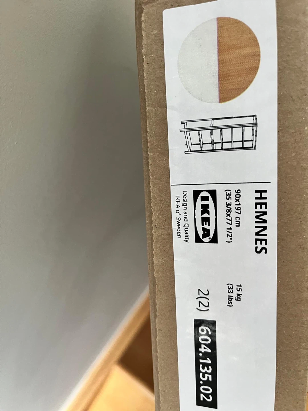 This is a new, sealed IKEA HEMNËS bookshelf. It's white with natural wood shelves. Assembly required.