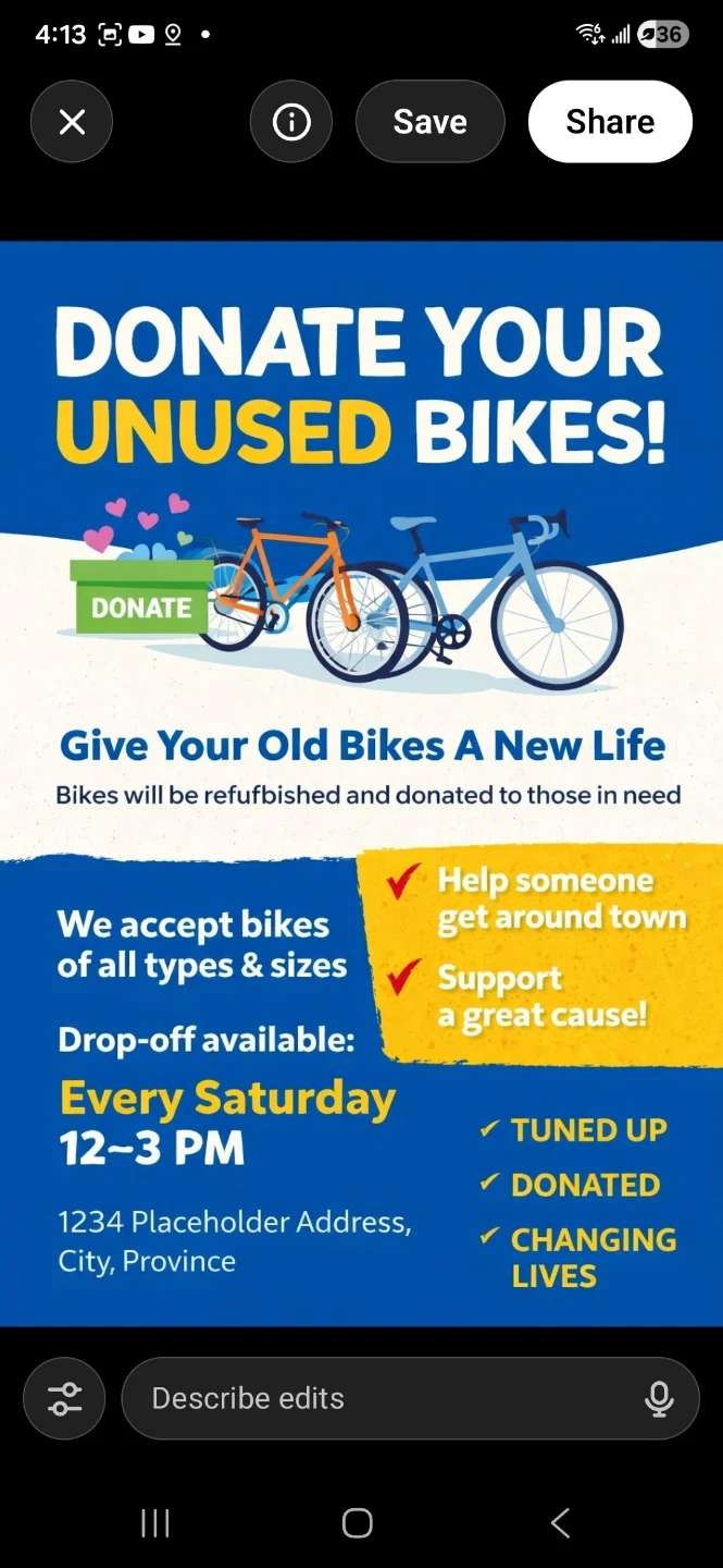 If you have a bicycle you no longer use, please consider donating it. Your bike can help a child experience joy, help someone get to work or school, or give a family a chance to stay active together.