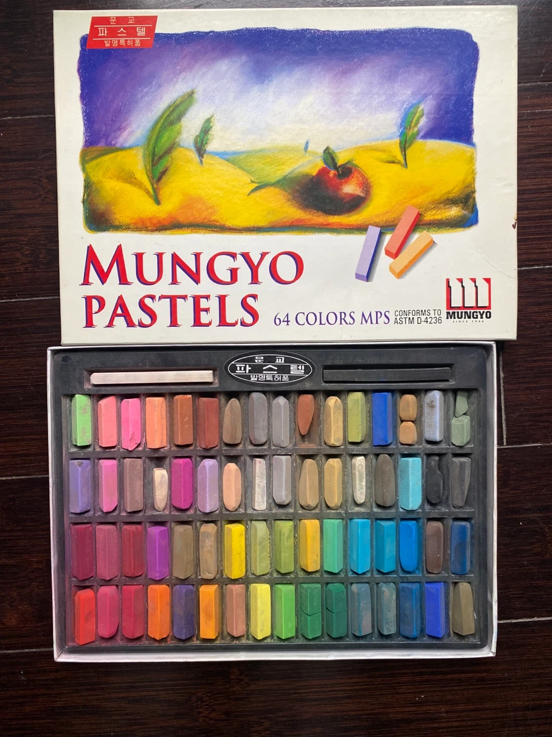 This is a set of Mungyo soft pastels with 64 colors. It conforms to ASTM D-4236 standards. These are artist-grade pastels.