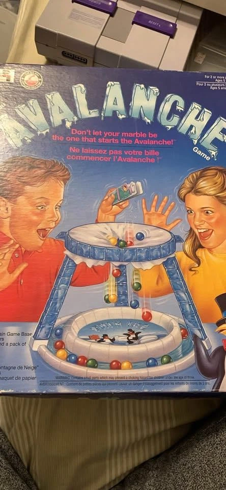 Selling the Avalanche game! The box says, "Don't let your marble be the one that starts the Avalanche!" It's a fun game for 2 or more players