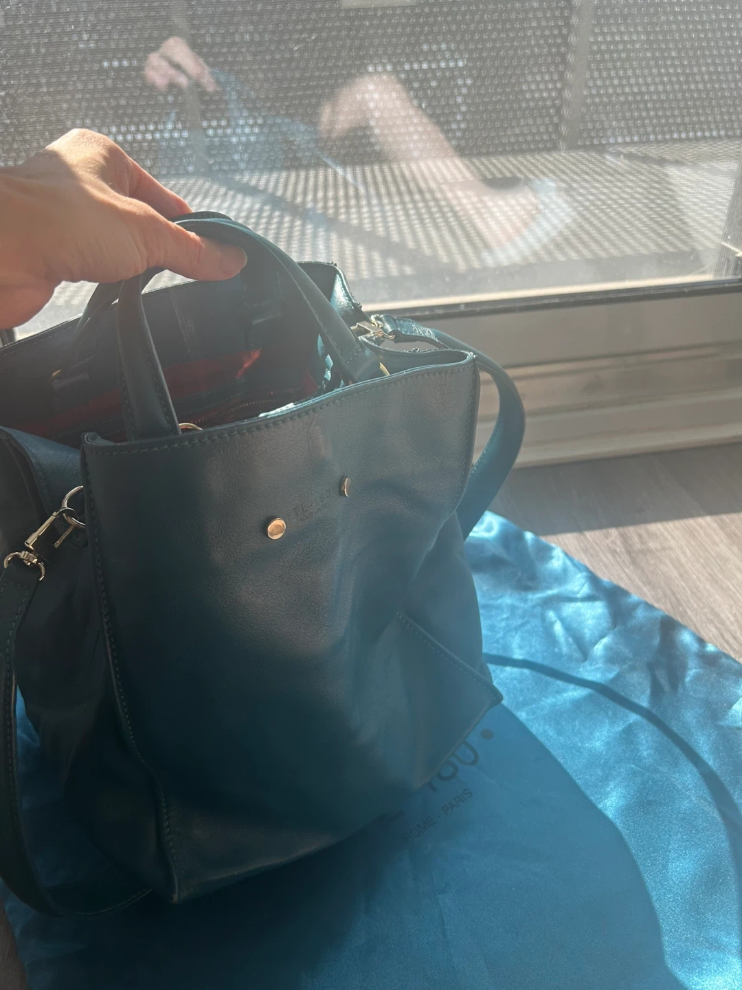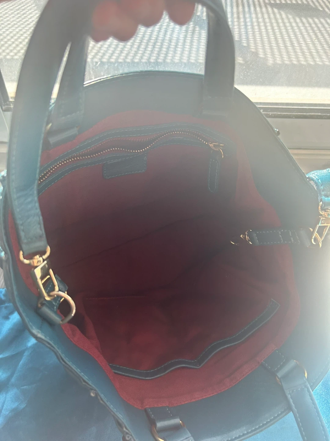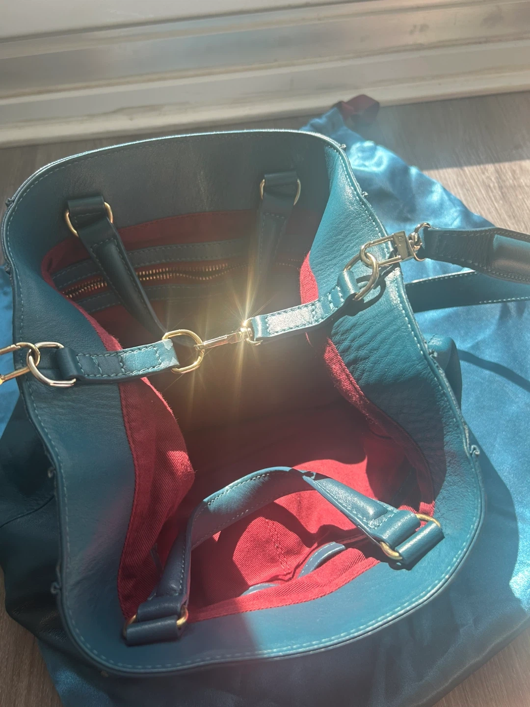The stunning teal exterior pairs with a vibrant, cheerful red interior for a gorgeous contrast. It comes with its original dust bag for perfect protection when not in use.