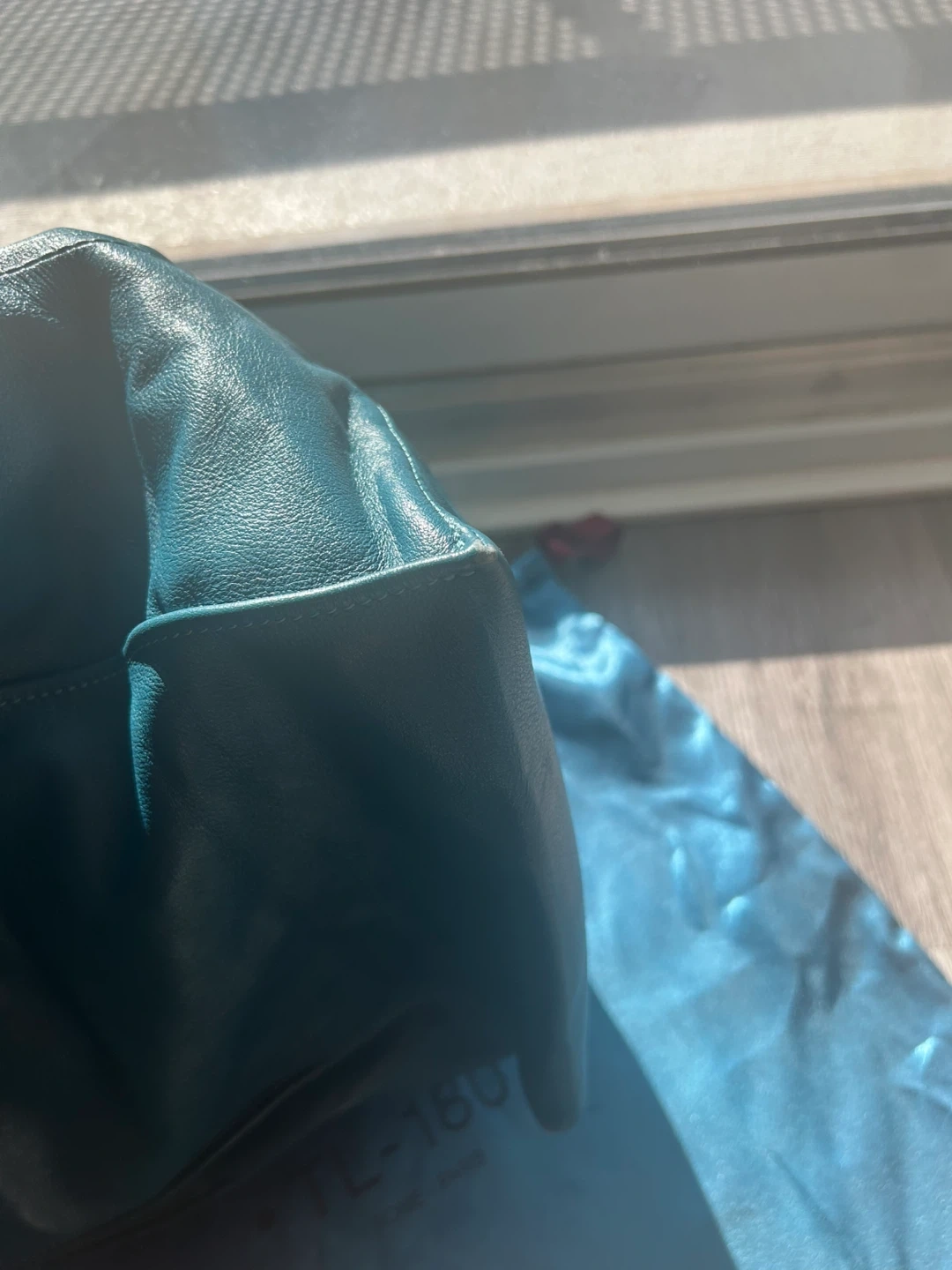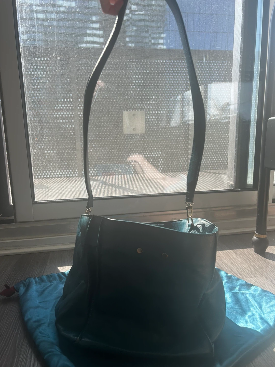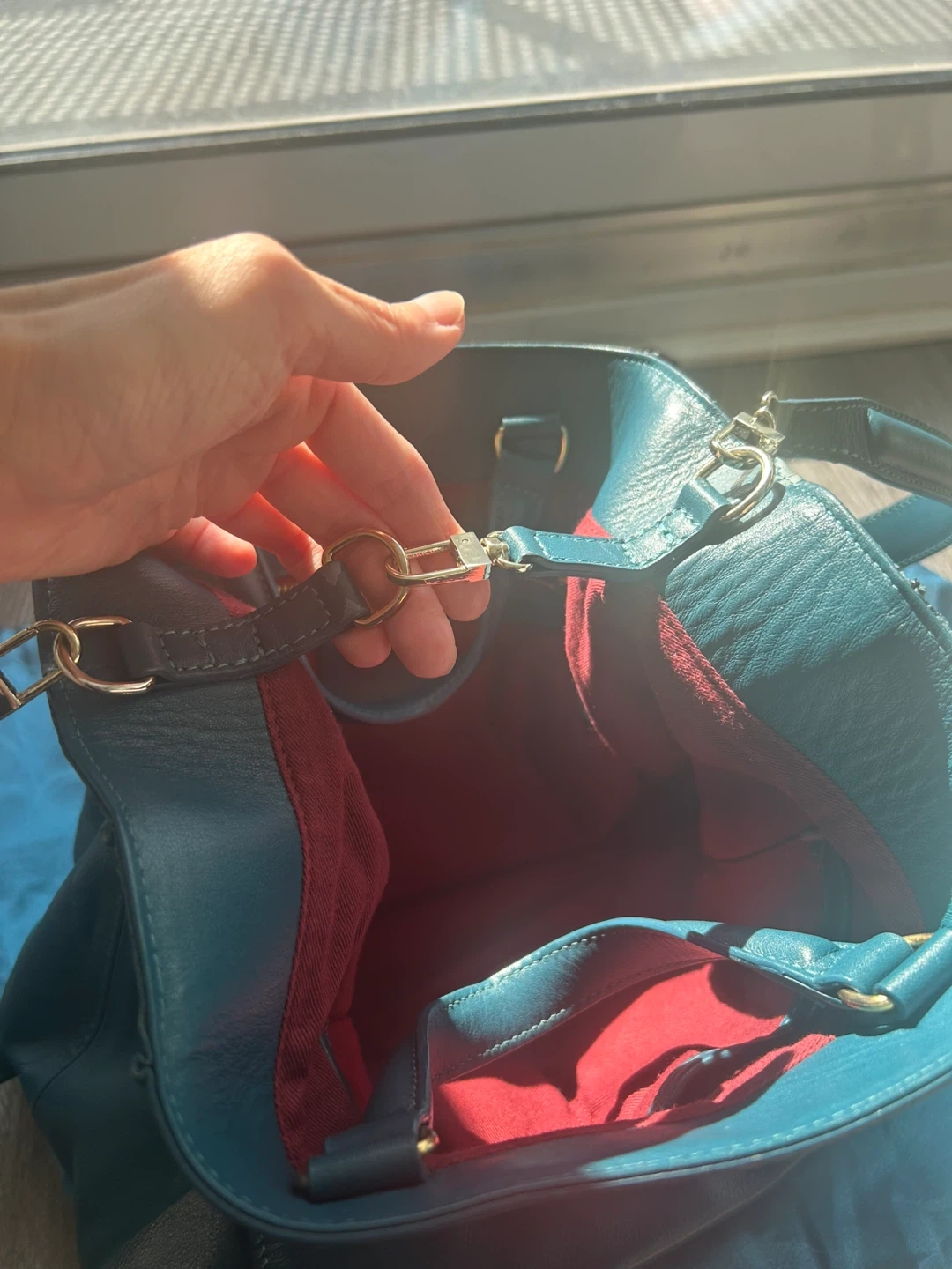 The stunning teal exterior pairs with a vibrant, cheerful red interior for a gorgeous contrast. It comes with its original dust bag for perfect protection when not in use.