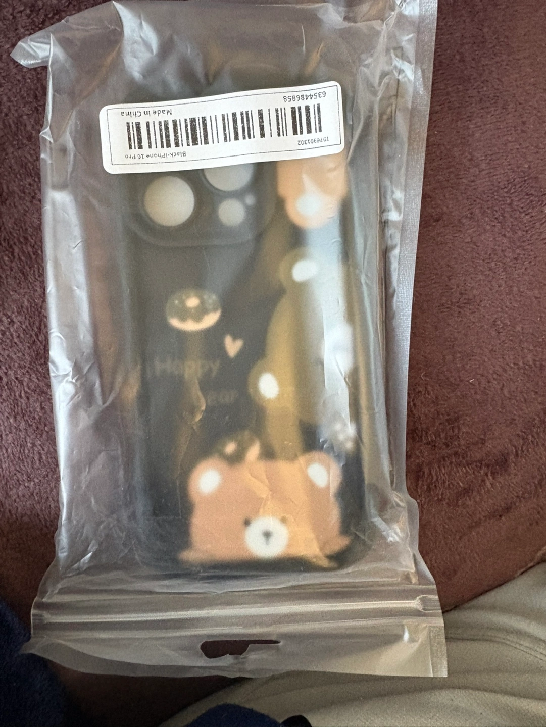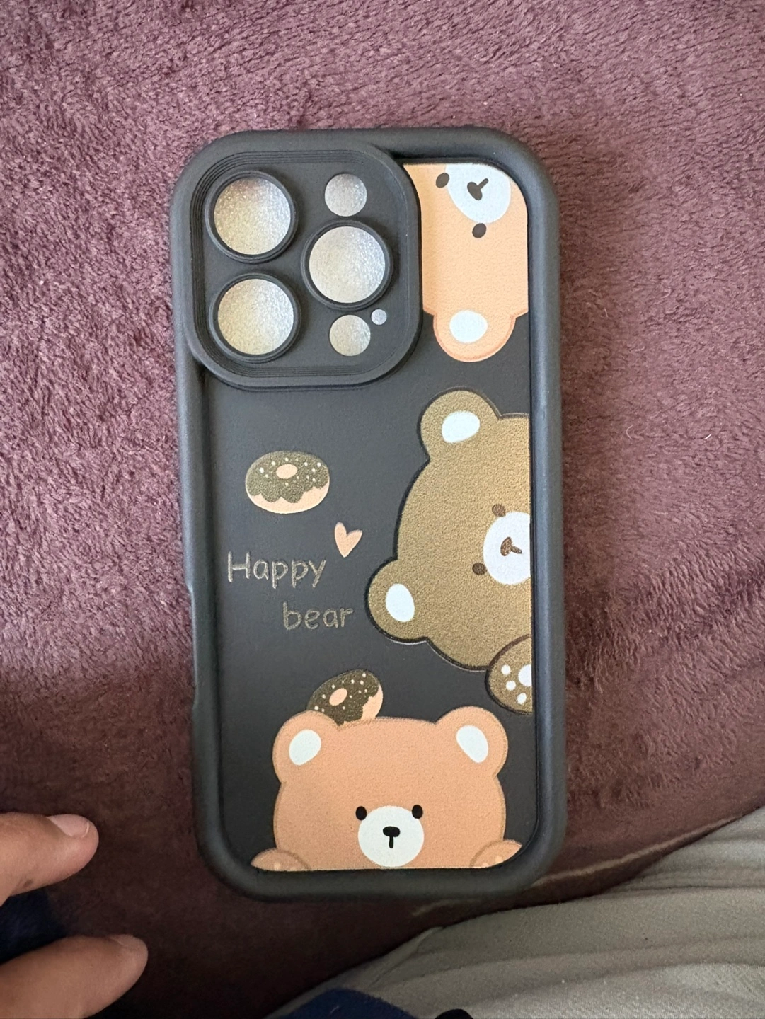Brand new phone case. Black silicone case. Features adorable bear design. Compatible with iPhone 16 Pro. Not ever used!!!!