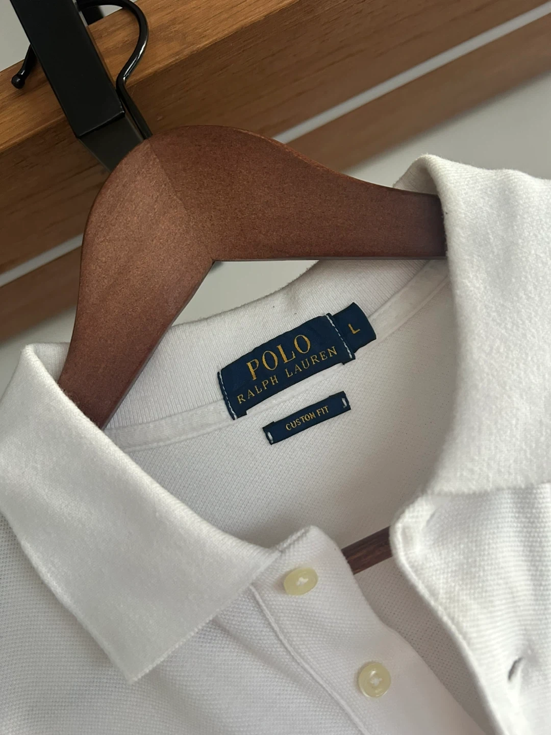 Selling a Polo Ralph Lauren polo shirt in a custom fit. It's size L and has a nice white and pink ombre design. The iconic Polo logo is embroidered on the chest. Perfect for a casual look! Its never worn selling since i never really reached for it.