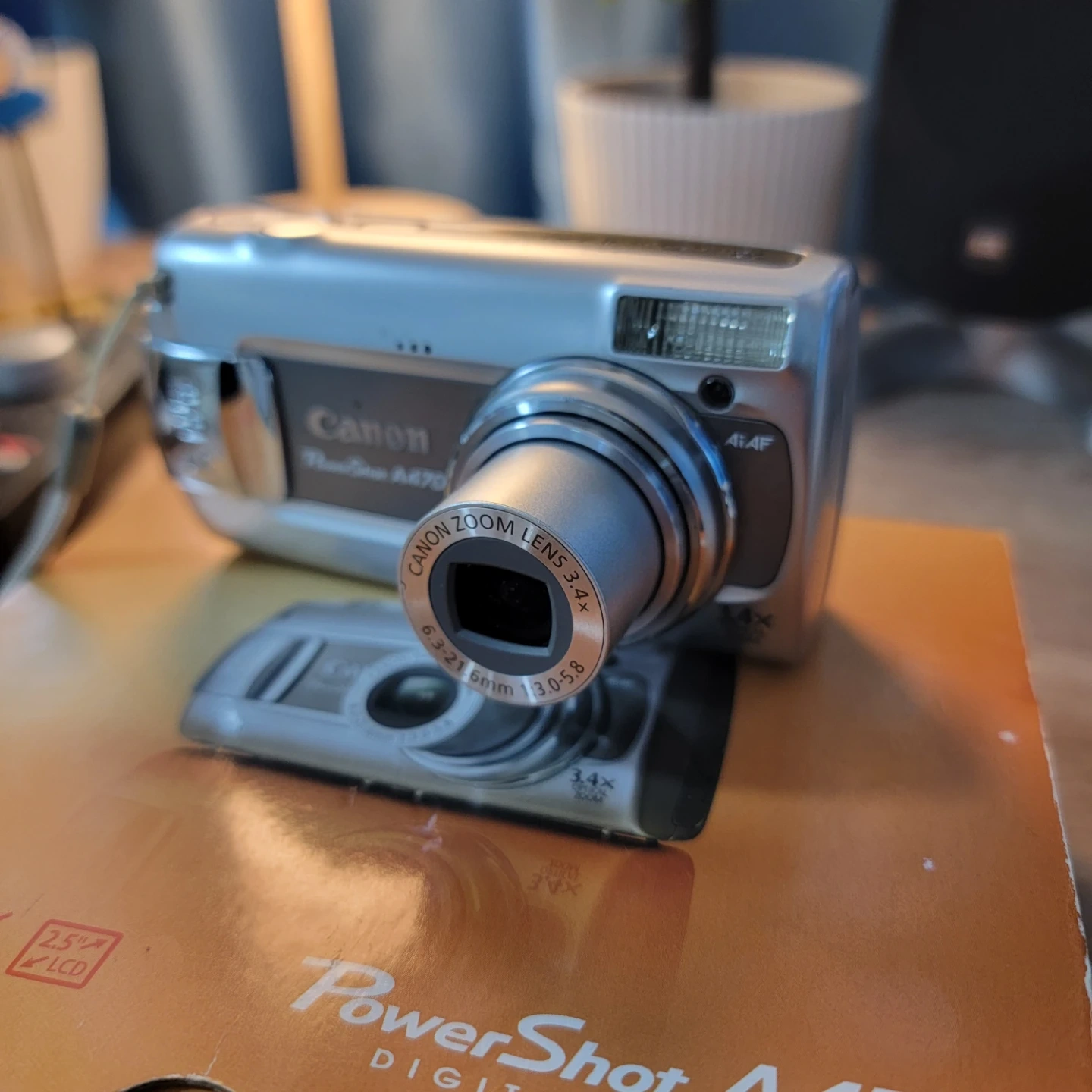 This is a Canon PowerShot A470 digital camera. It features a 7.1 megapixel resolution and 3.4x optical zoom. The camera has a 2.5-inch LCD screen.