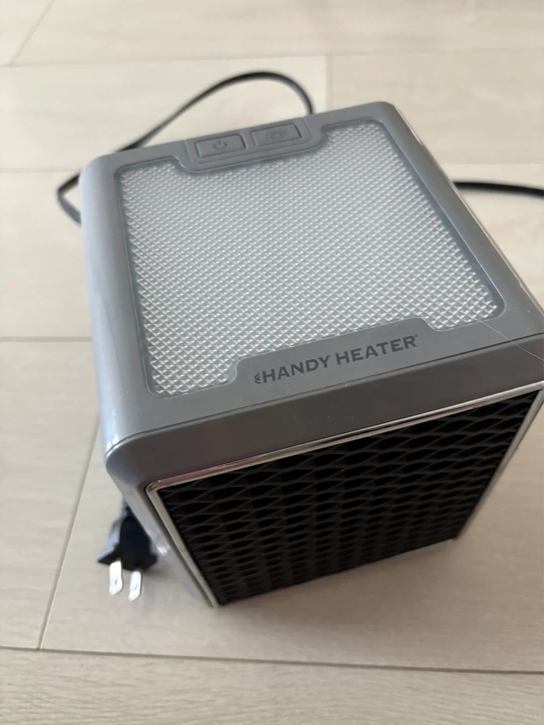 This is a Handy Heater Pure Warmth model 2100B. It's a compact electric heater with 200W power consumption. This heater is useful for providing personal warmth in smaller spaces.